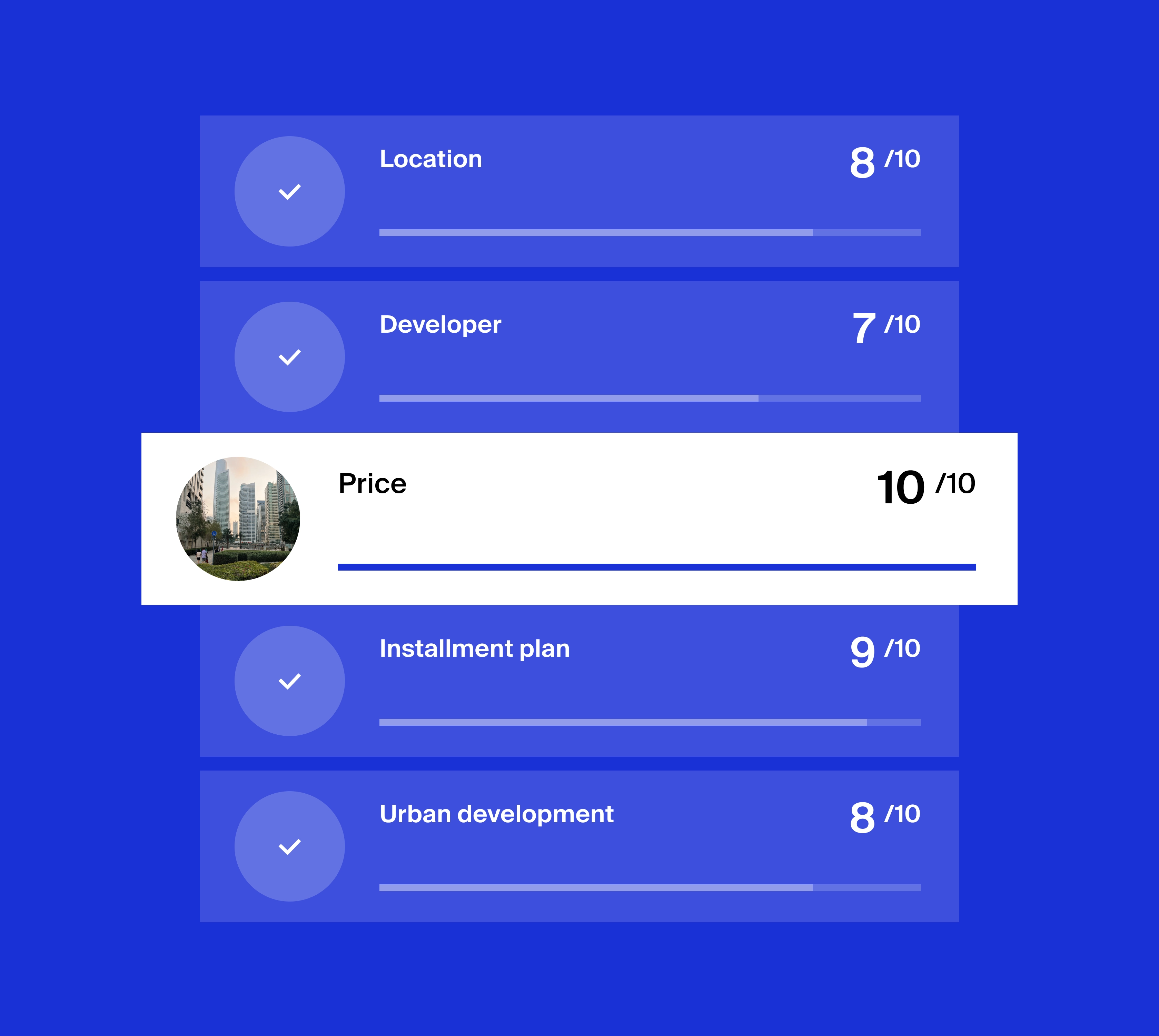 We evaluate growth based on Land Department data. For example, in Dubai Marina the yield is lower than in suburban districts, but the potential for price appreciation on resale is higher