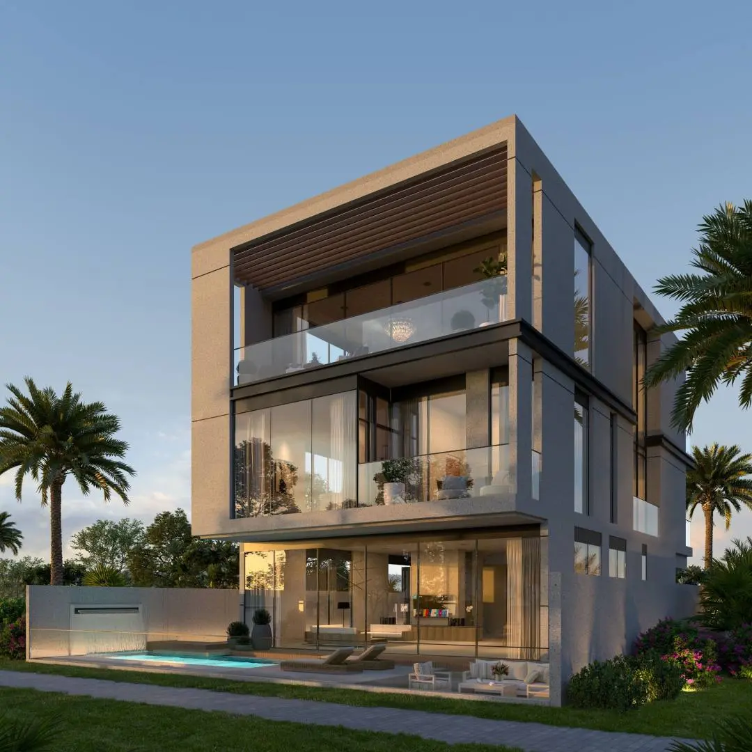 Each villa has its own land plot with a garden, garage, and often a private pool. Some premium projects include internal elevators.