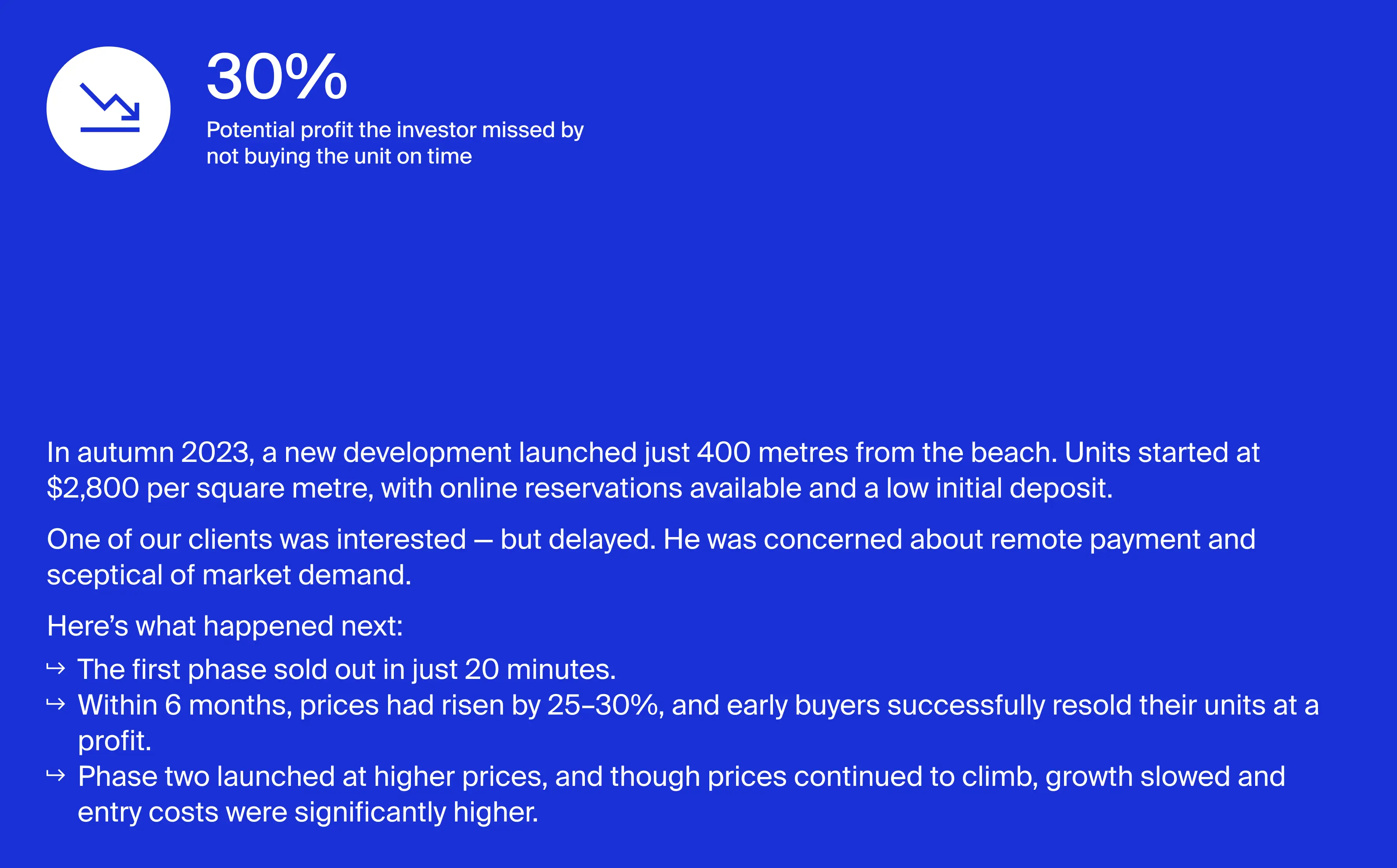 Waiting too long can mean settling for less attractive units, or missing out entirely on projects that quickly become fully subscribed. While caution is important, excessive delays often result in lost opportunities and reduced profitability.