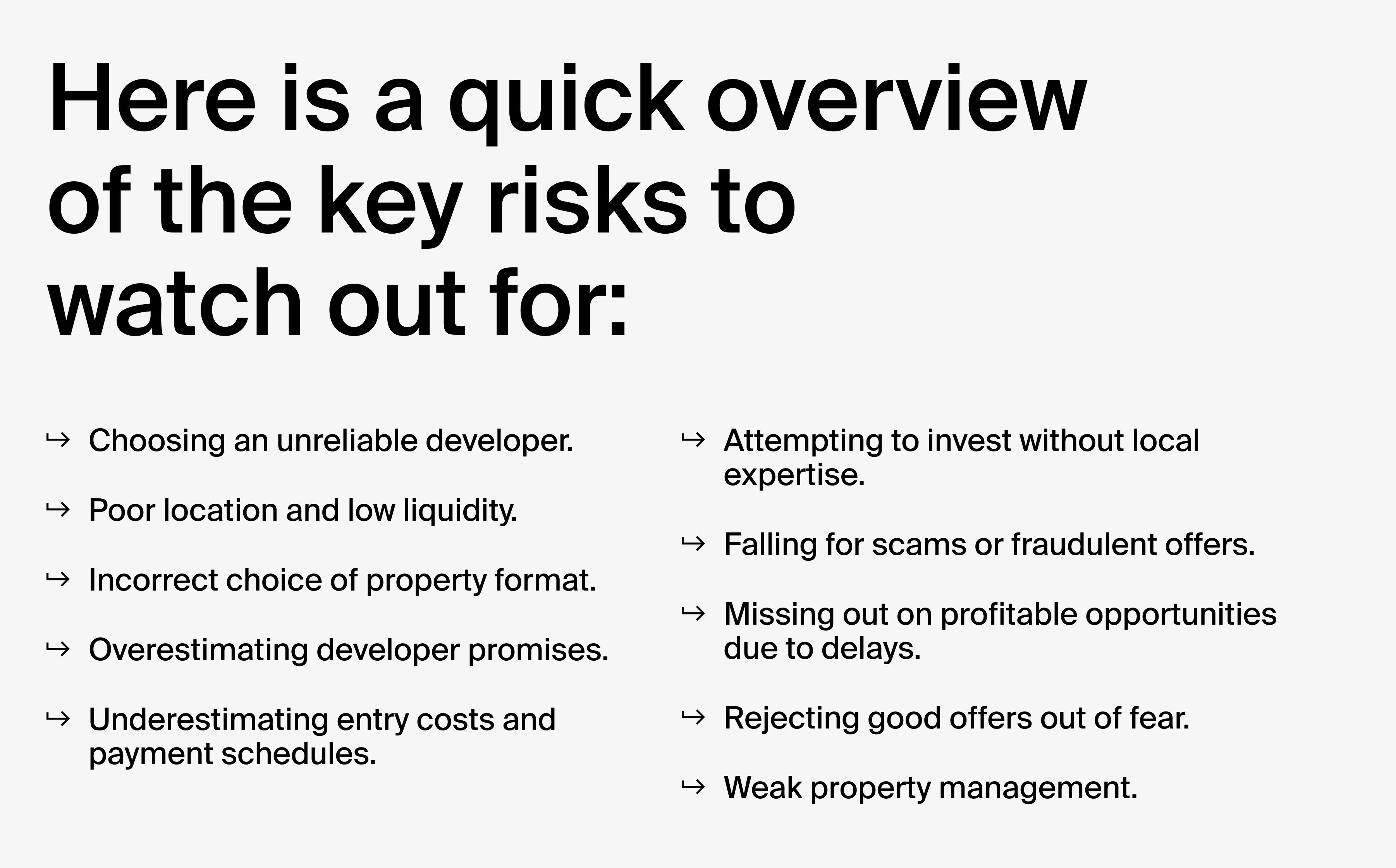 Yet despite strong fundamentals, success is far from guaranteed. Around 80% of first-time foreign investors take a loss on their investment — most often because they overlook critical details: location-specific dynamics, hidden costs, and legal restrictions.