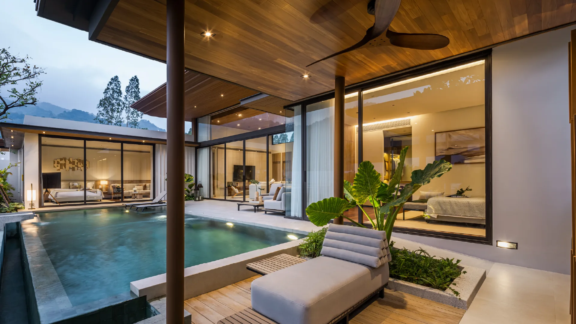 Two master bedrooms offer maximum comfort, and every private space is positioned to provide a unique view of the pool, ensuring unforgettable moments for the whole family.