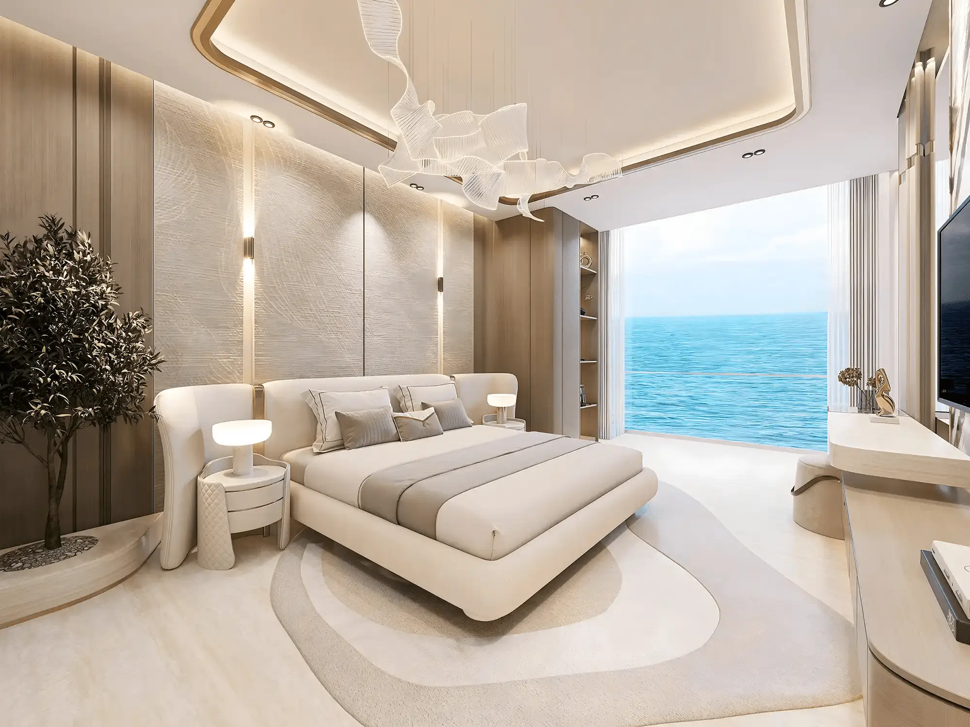 Residents are offered fully furnished studios, apartments, and penthouses with ocean views