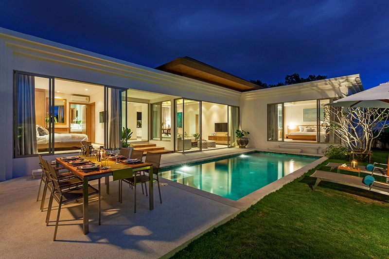 Located in a quiet corner on Phuket’s west coast, the project offers convenient access to restaurants, golf courses, and long sandy beaches, as well as easy travel to the airport and international schools.