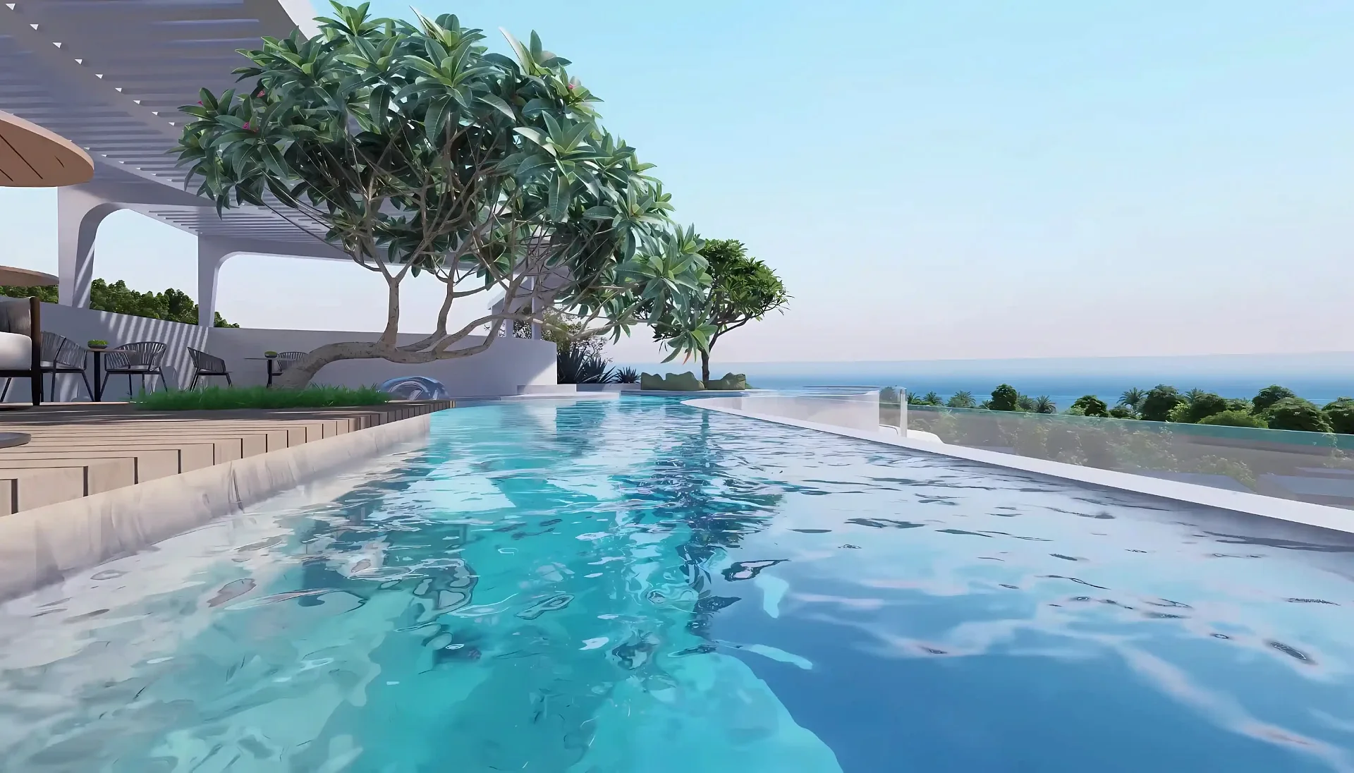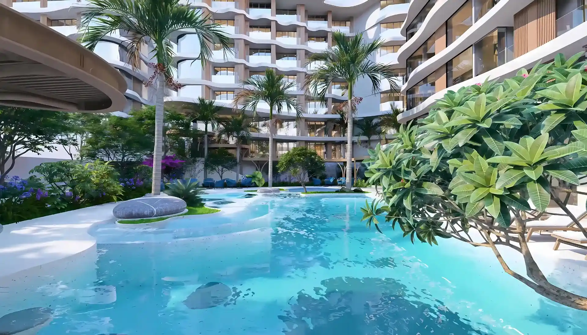In Building C, select units offer direct balcony access to the pool and garden, providing enhanced privacy