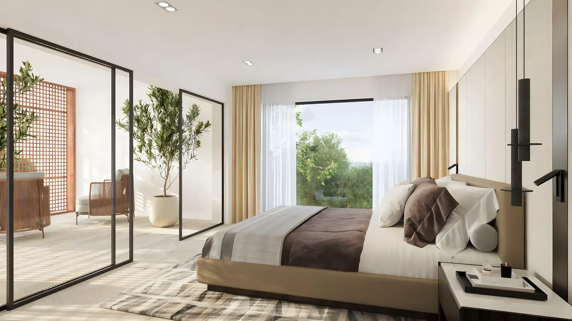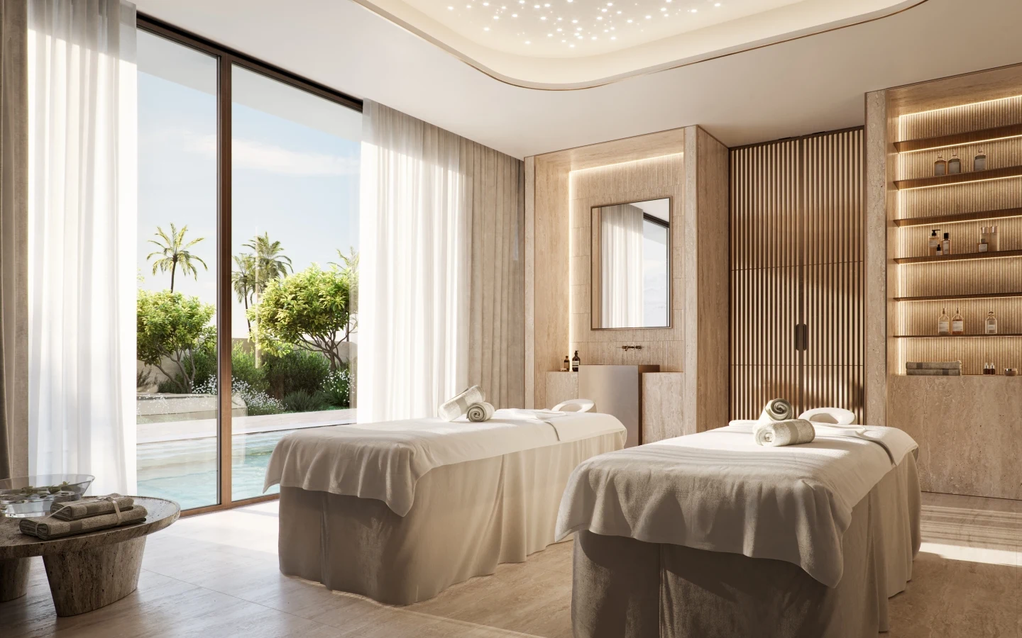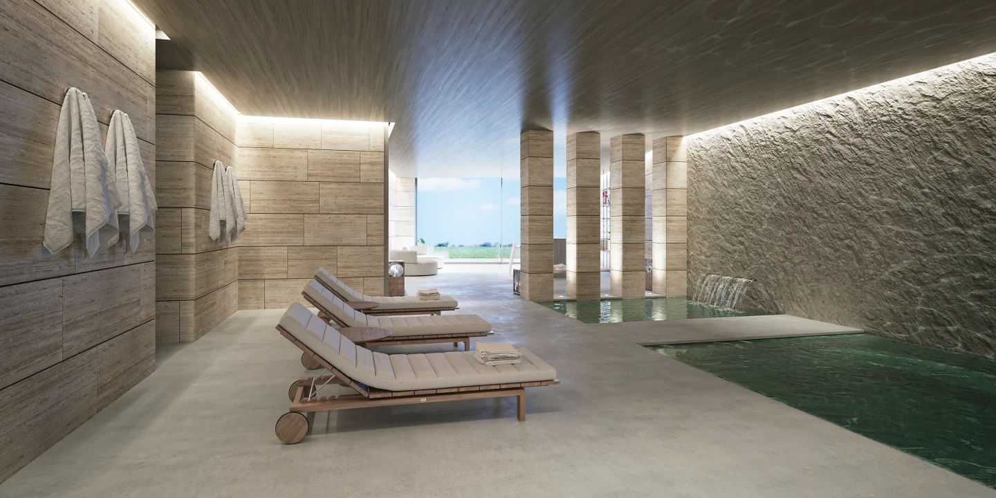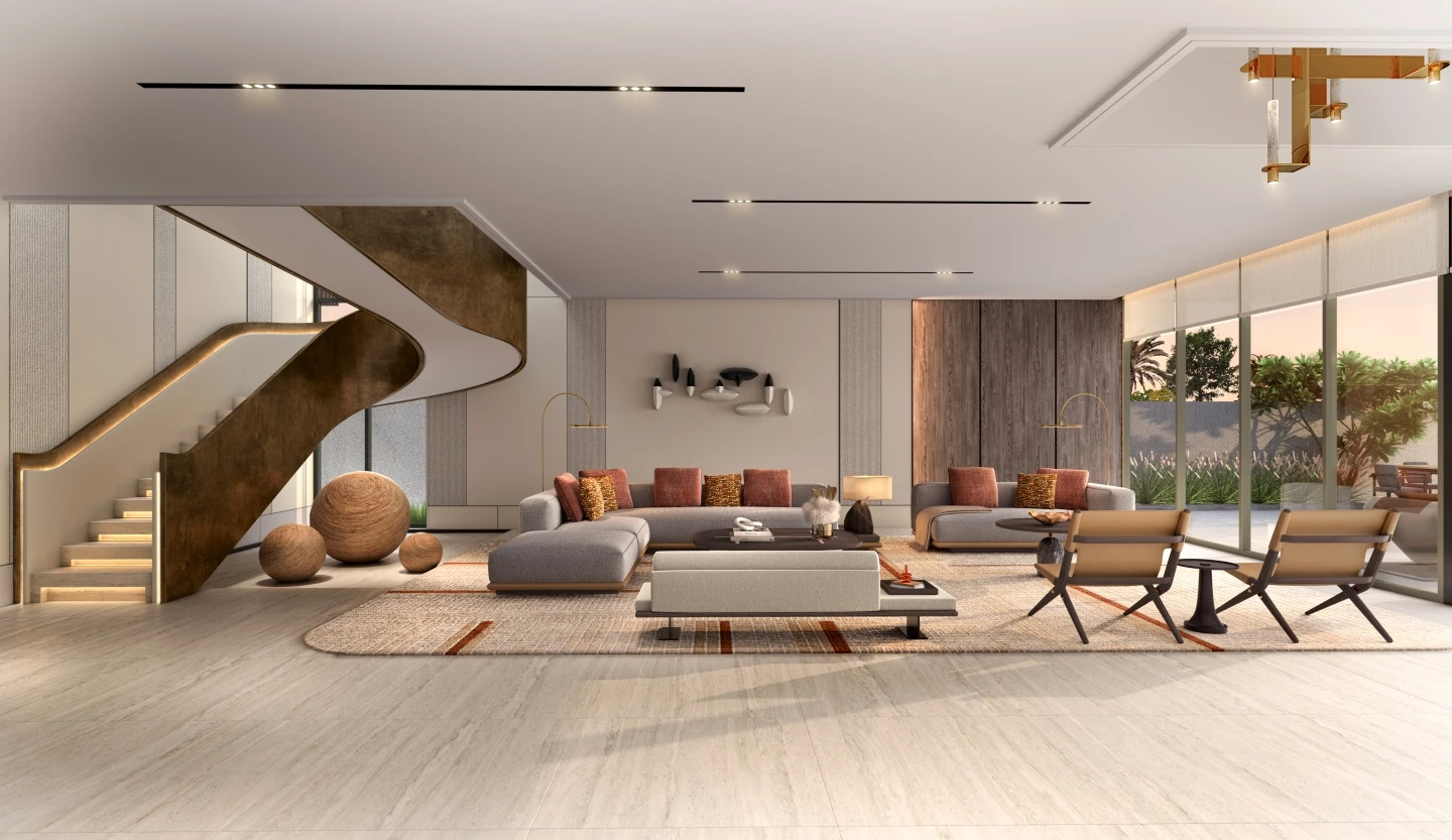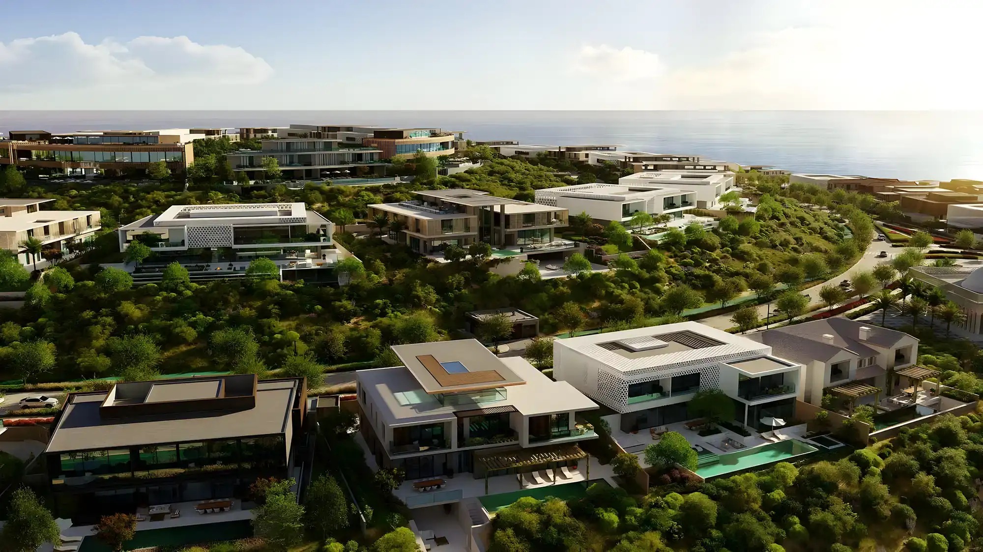 Six villa types are available, most including a fully equipped gym, staff room, private garage and private swimming pool