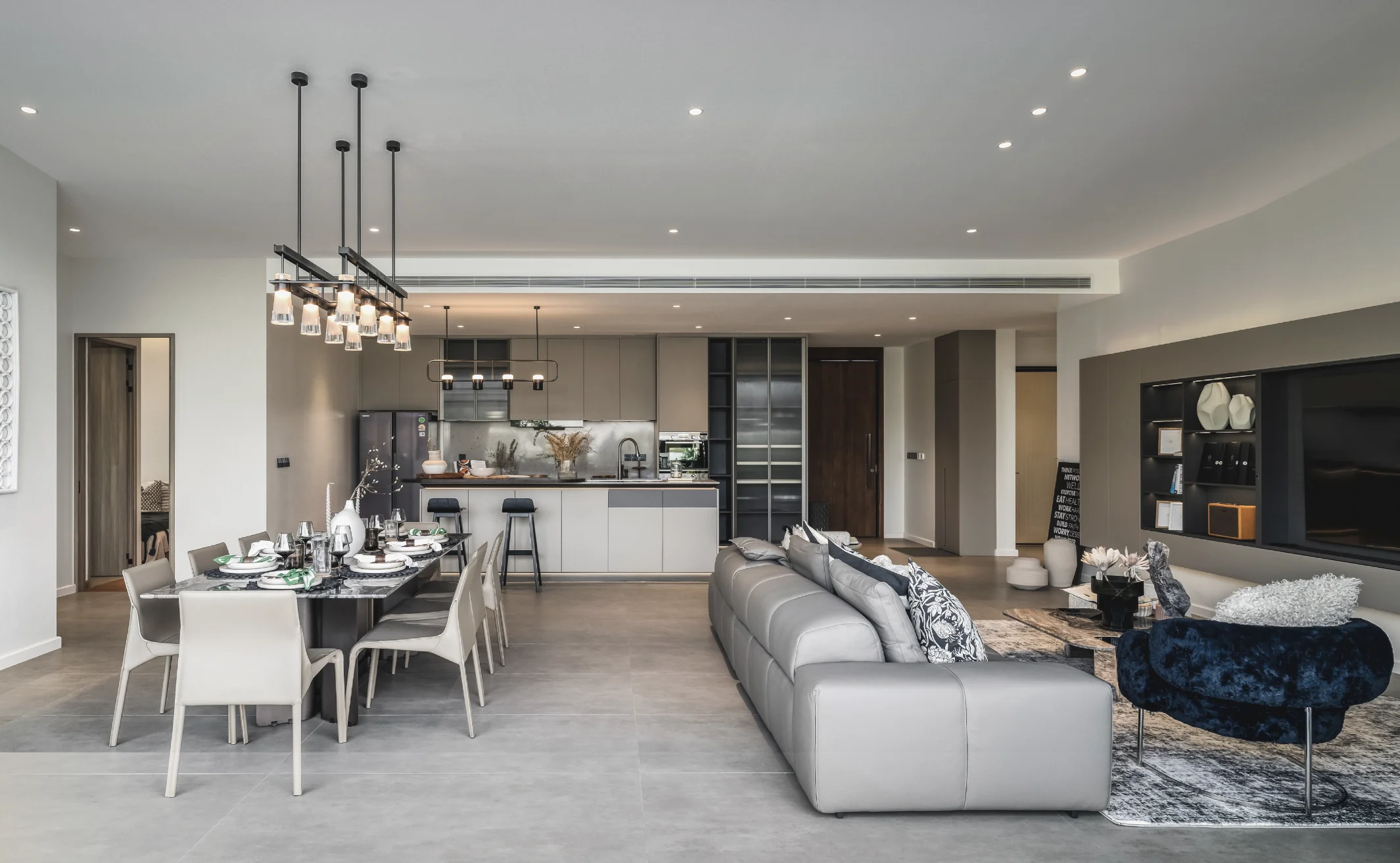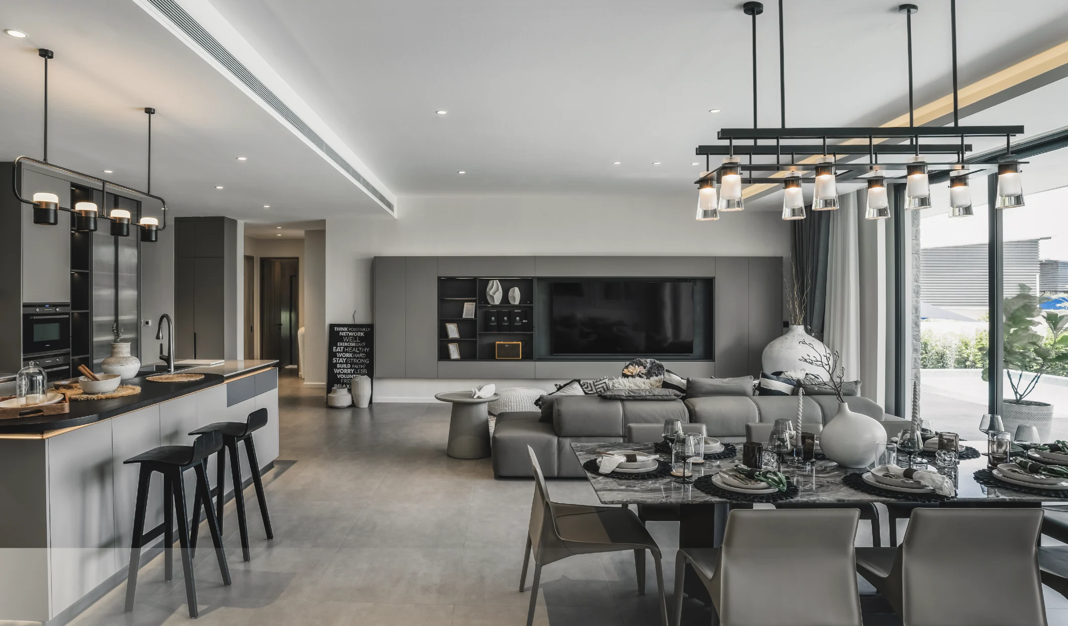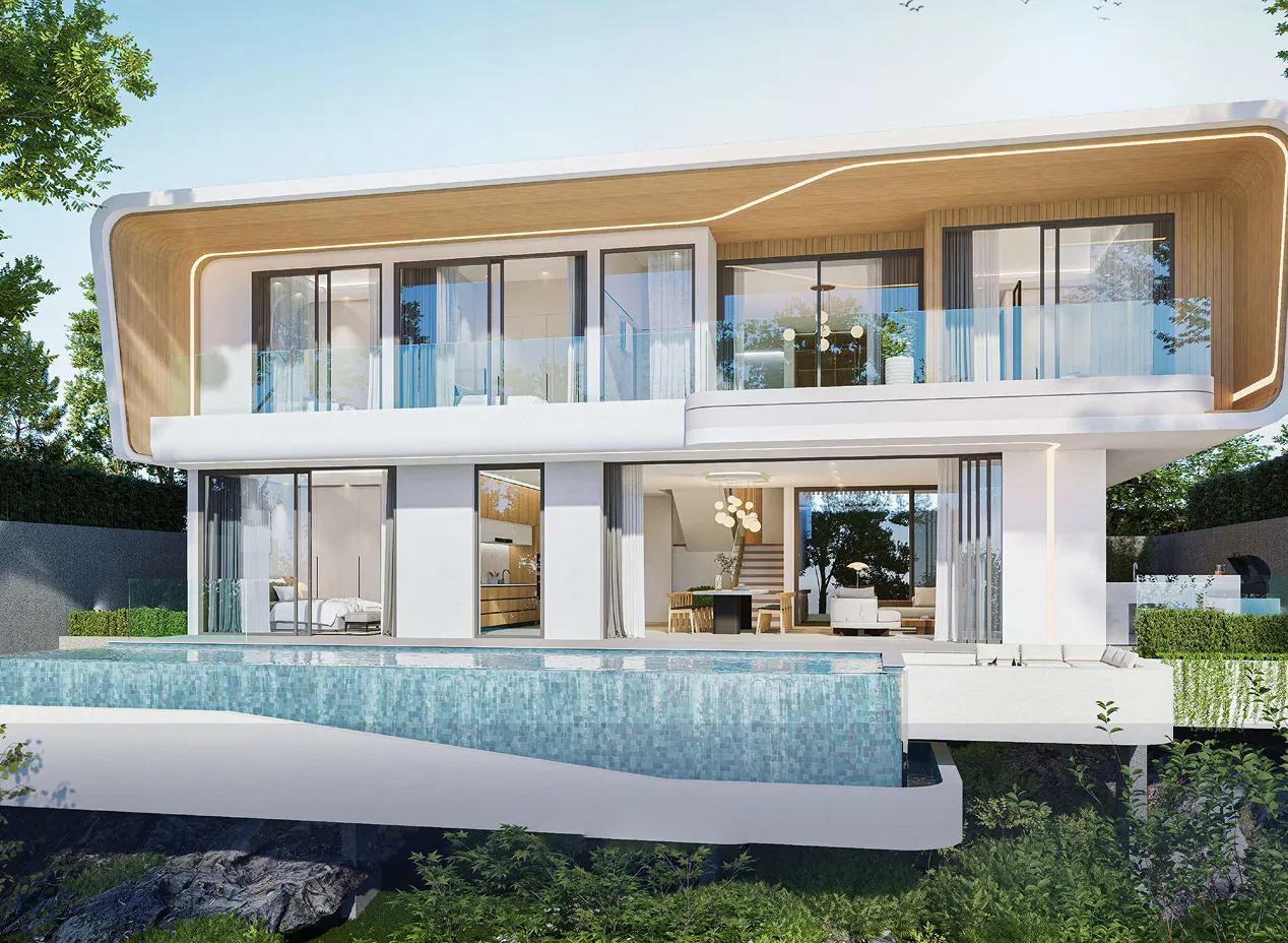 The spacious villas, starting from 398 m² with a minimum of 3 bedrooms, are designed in a stylish architectural concept using high-quality materials