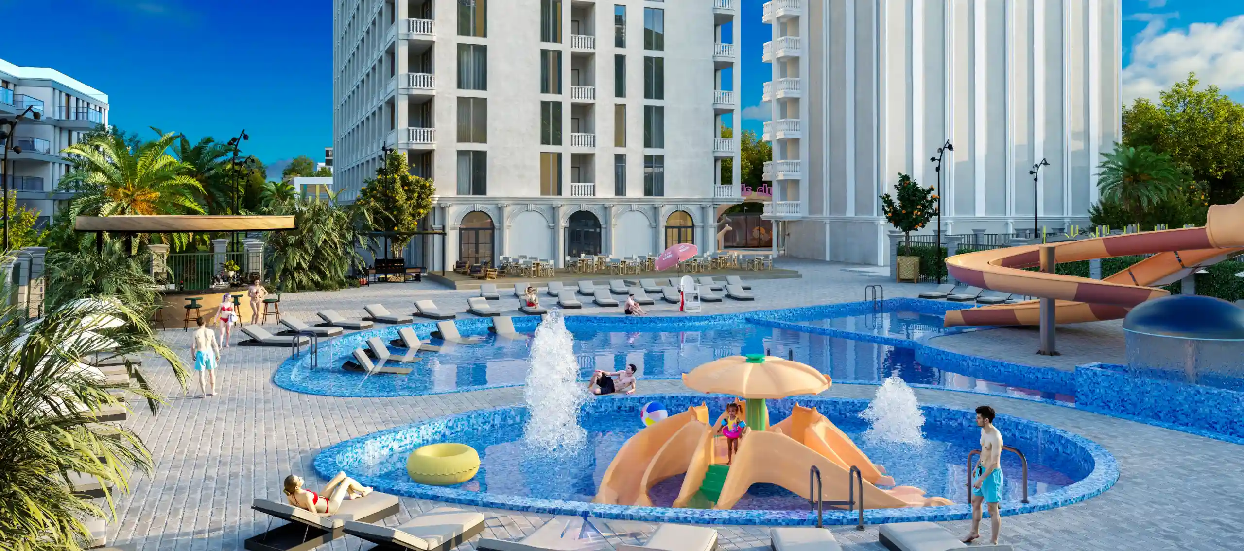 This project represents a five-star all-inclusive hotel with exclusive infrastructure and apartments offering panoramic sea views.