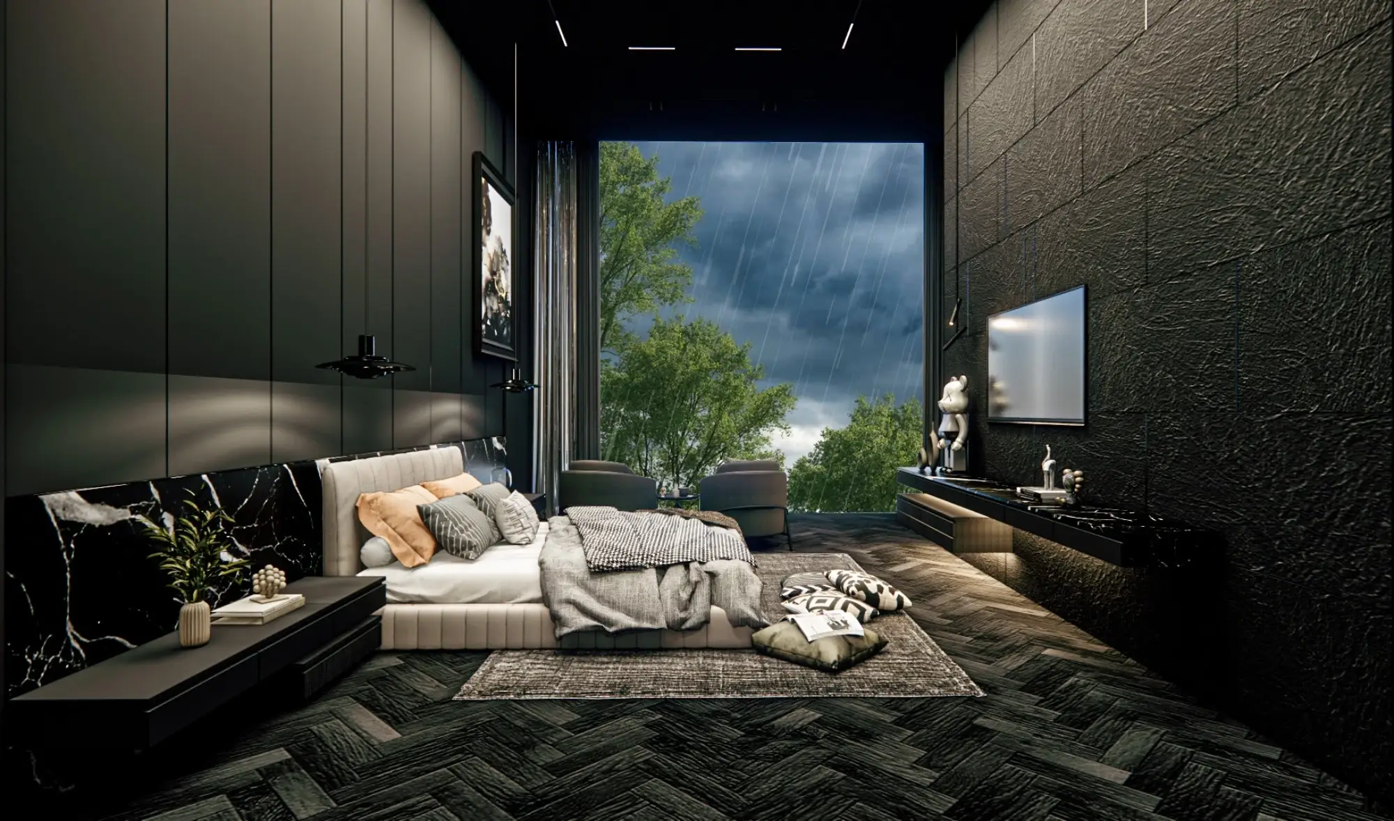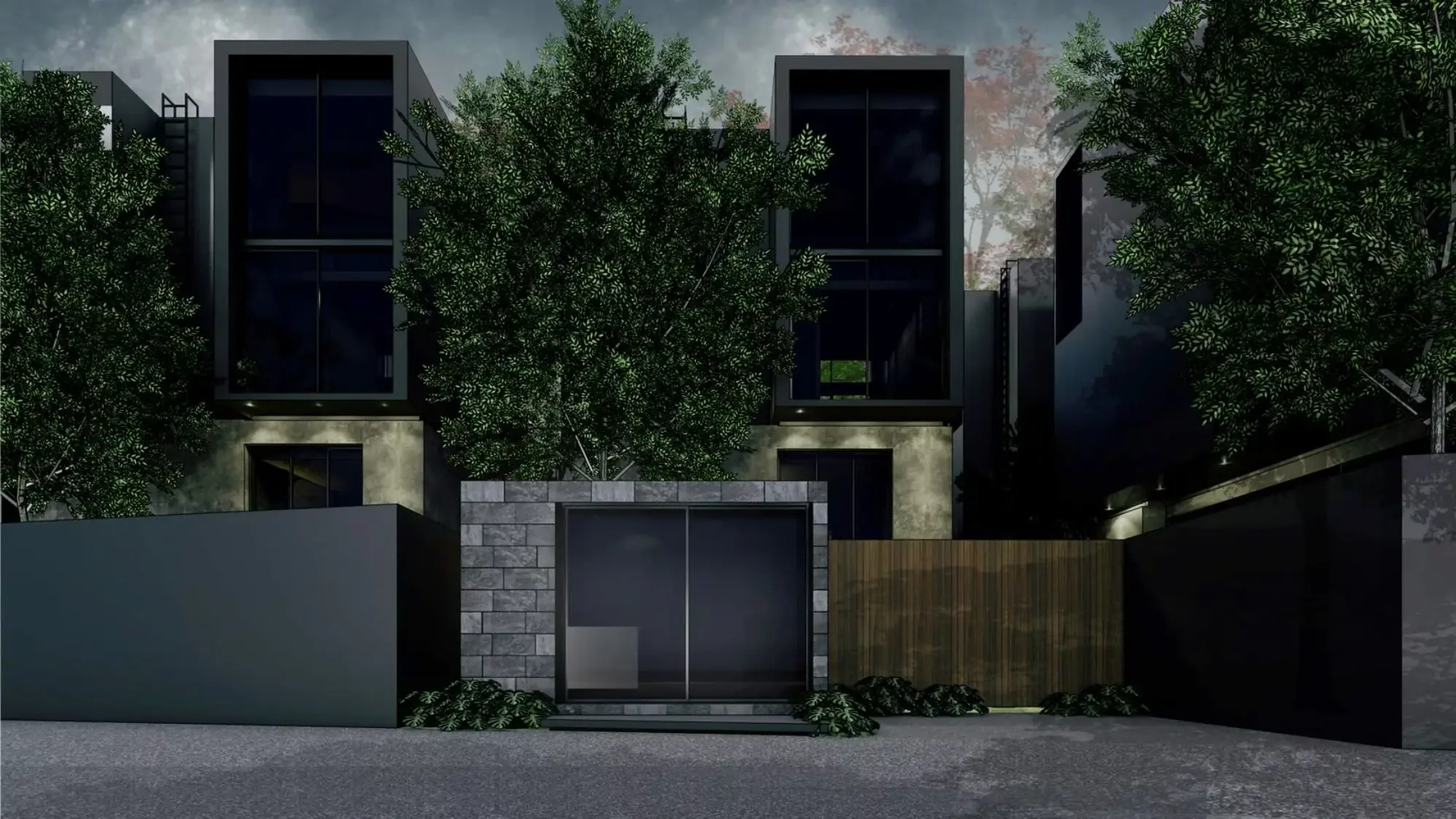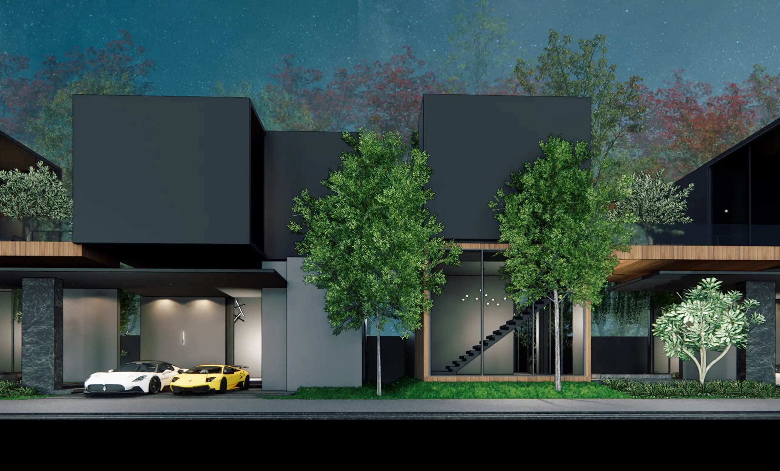 The project consists of 18 villas in dark tones with various layouts