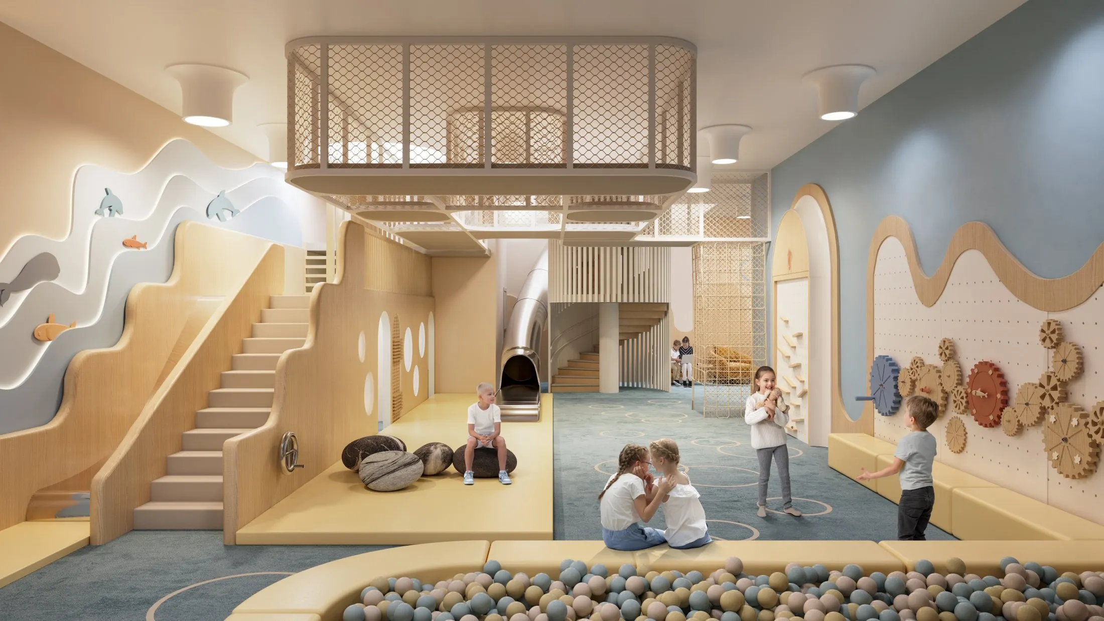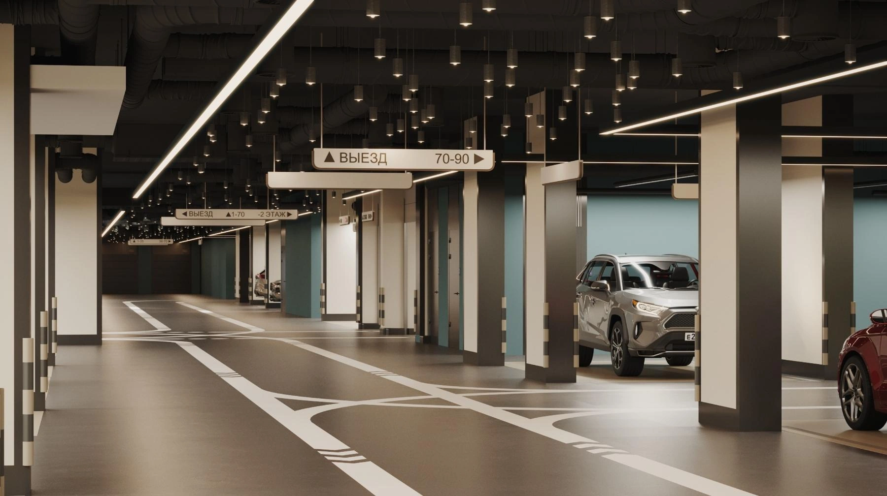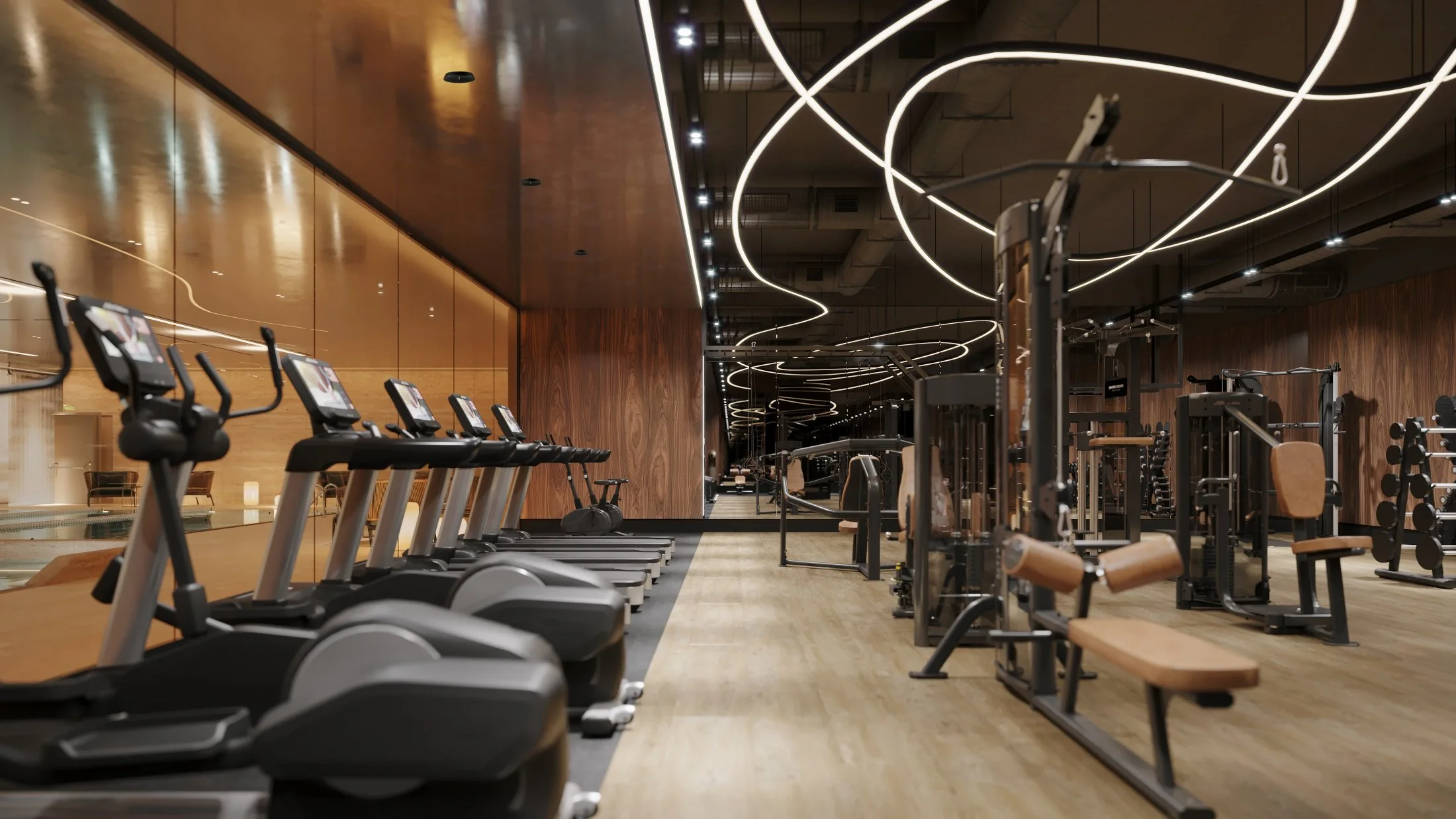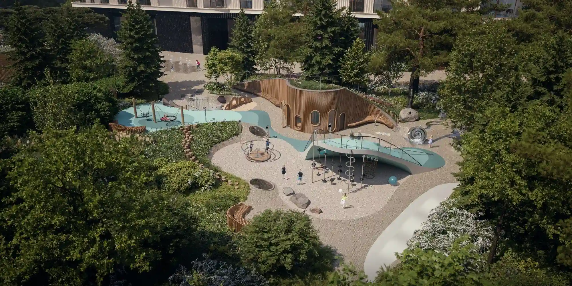 На отдельном участке территории дома расположены шесть вилл площадью от 133 до 660 м², при каждой из которых — уютное патио с собственной территорией и в подземном пространстве — личная зона спа с бассейном