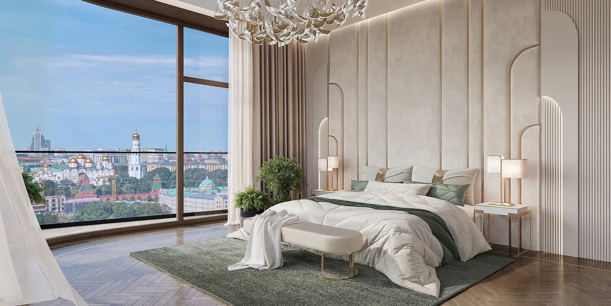 Из большинства квартир открываются виды на Кремль и другие достопримечательности центра Москвы, включая храм Христа Спасителя и собор Василия Блаженного