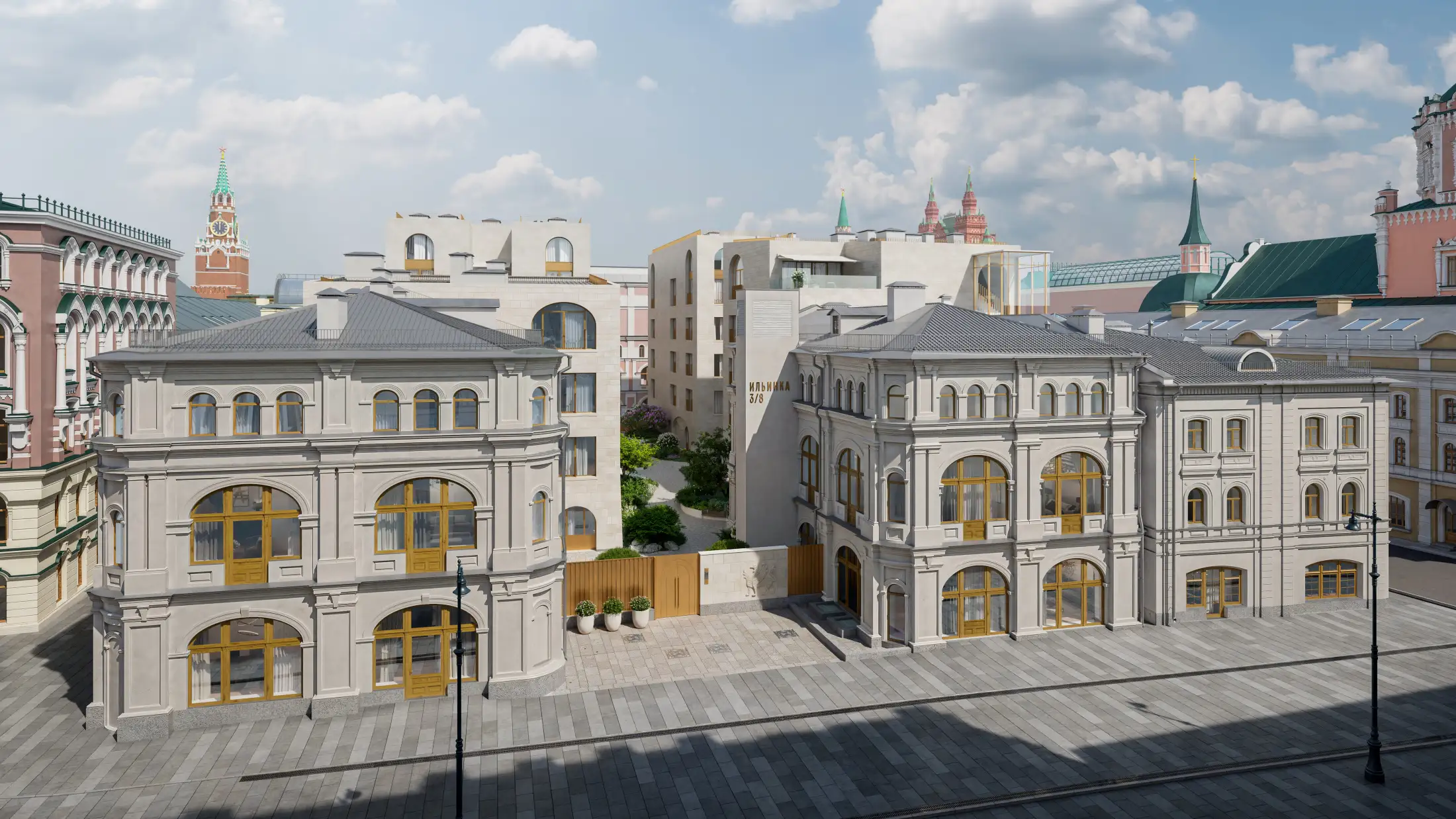 Состоит из 7-ми малоэтажных особняков, 3 из которых — отреставрированные здания XIX века, а остальные 4 будут отличаться обликом в неорусском стиле