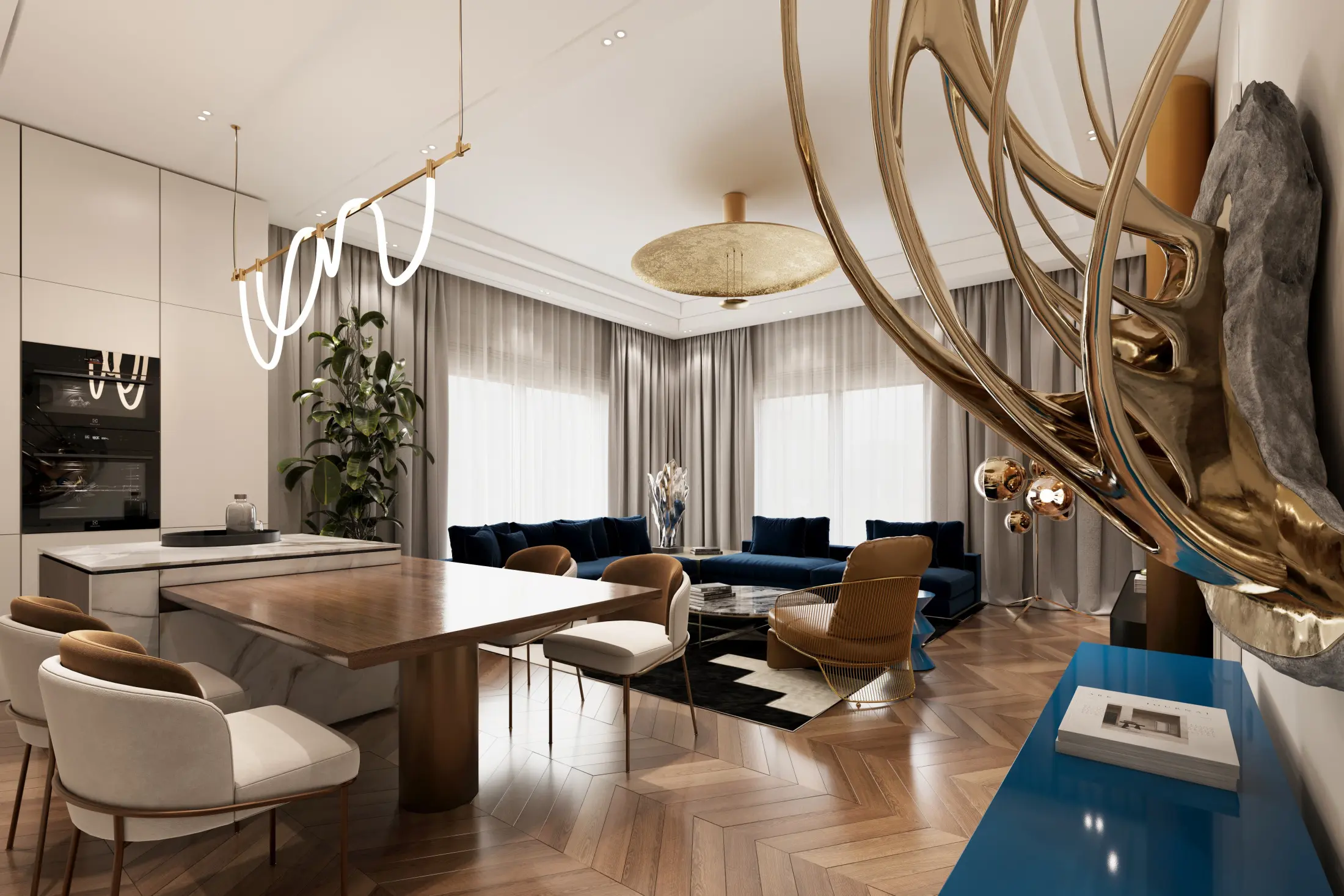 Частные особняки с отдельными входами на одну семью, двухуровневые пентхаусы с каминами и потолками до 6 метров, пентхаусы с каминами и подогреваемыми террасами