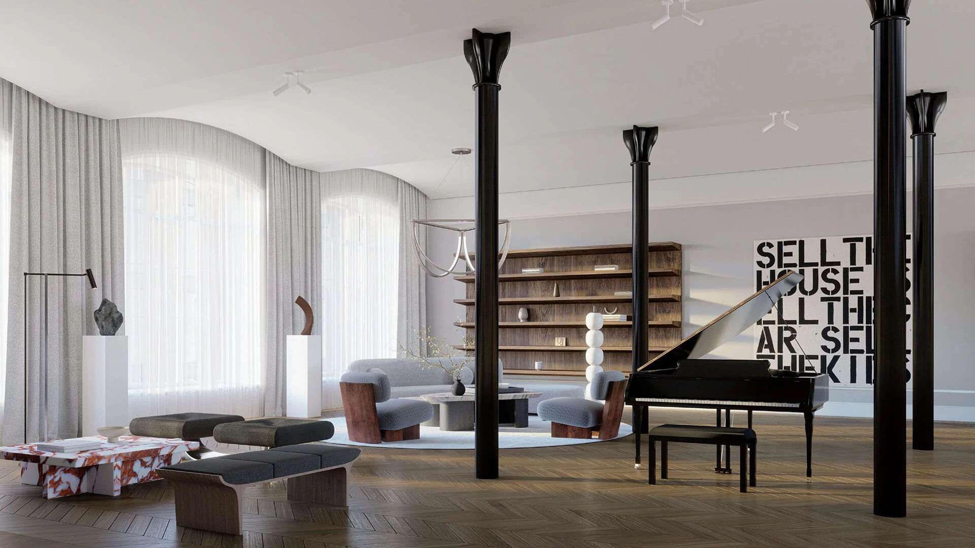 В проекте представлены апартаменты и резиденции площадью 1161 м² с патио, двухуровневые таунхаусы, пентхаусы с террасами