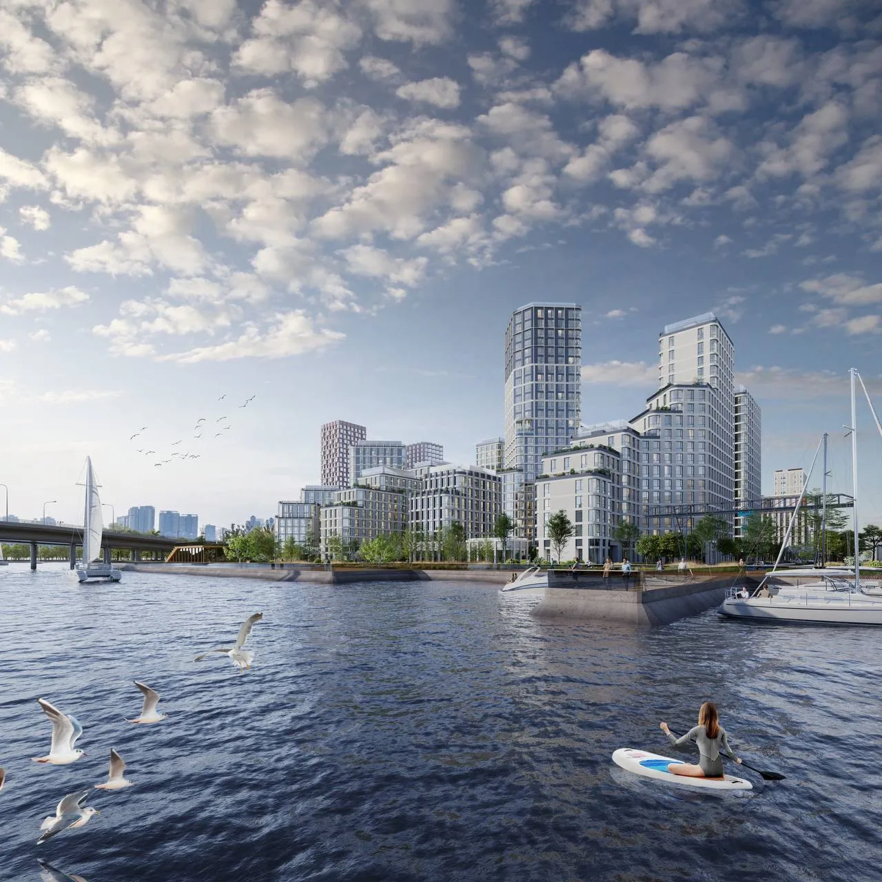 В живописной локации на набережной Марка Шагала появятся разновысотные многоквартирные корпуса, функциональные таунхаусы и индивидуальные urban-виллы