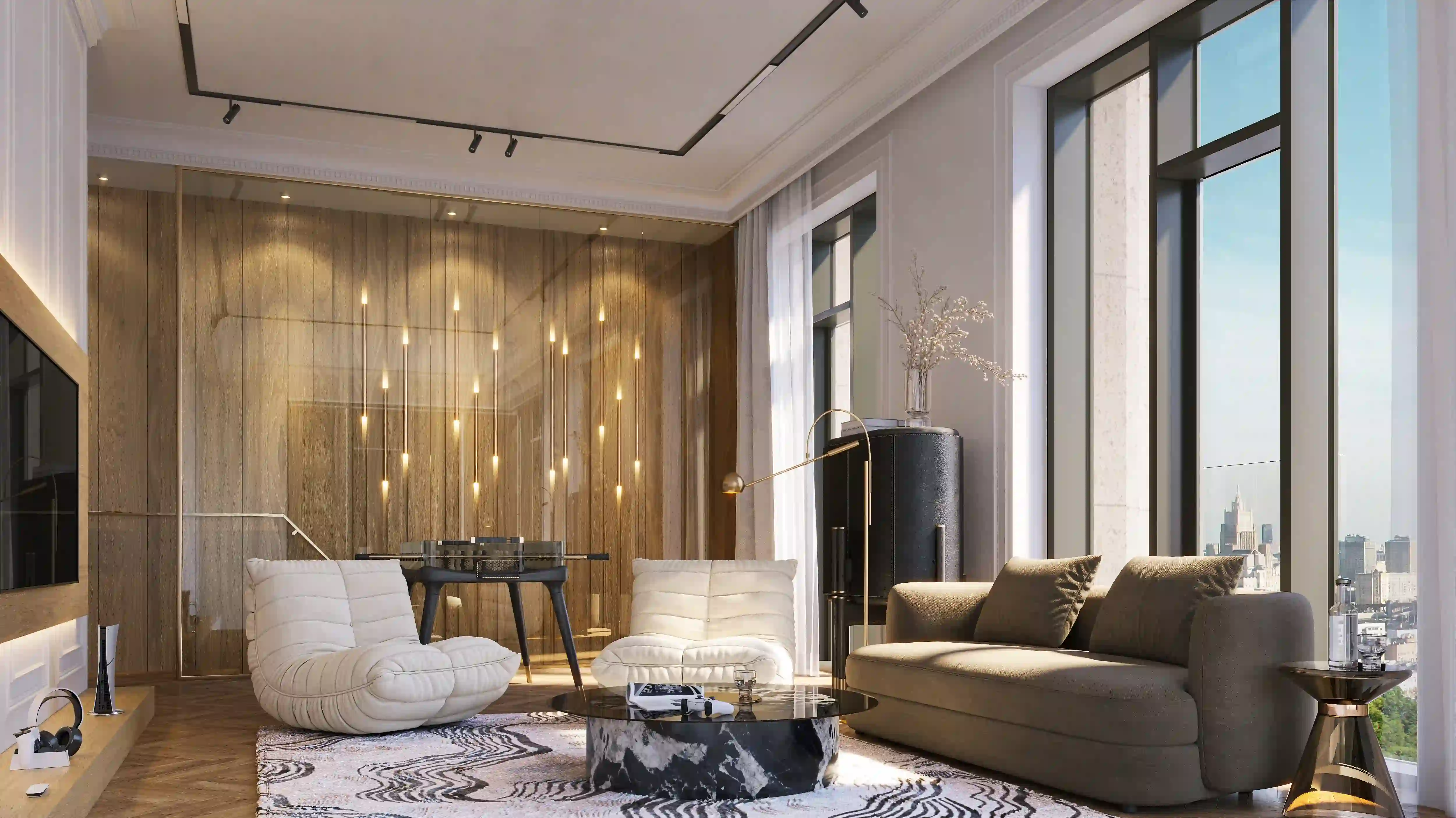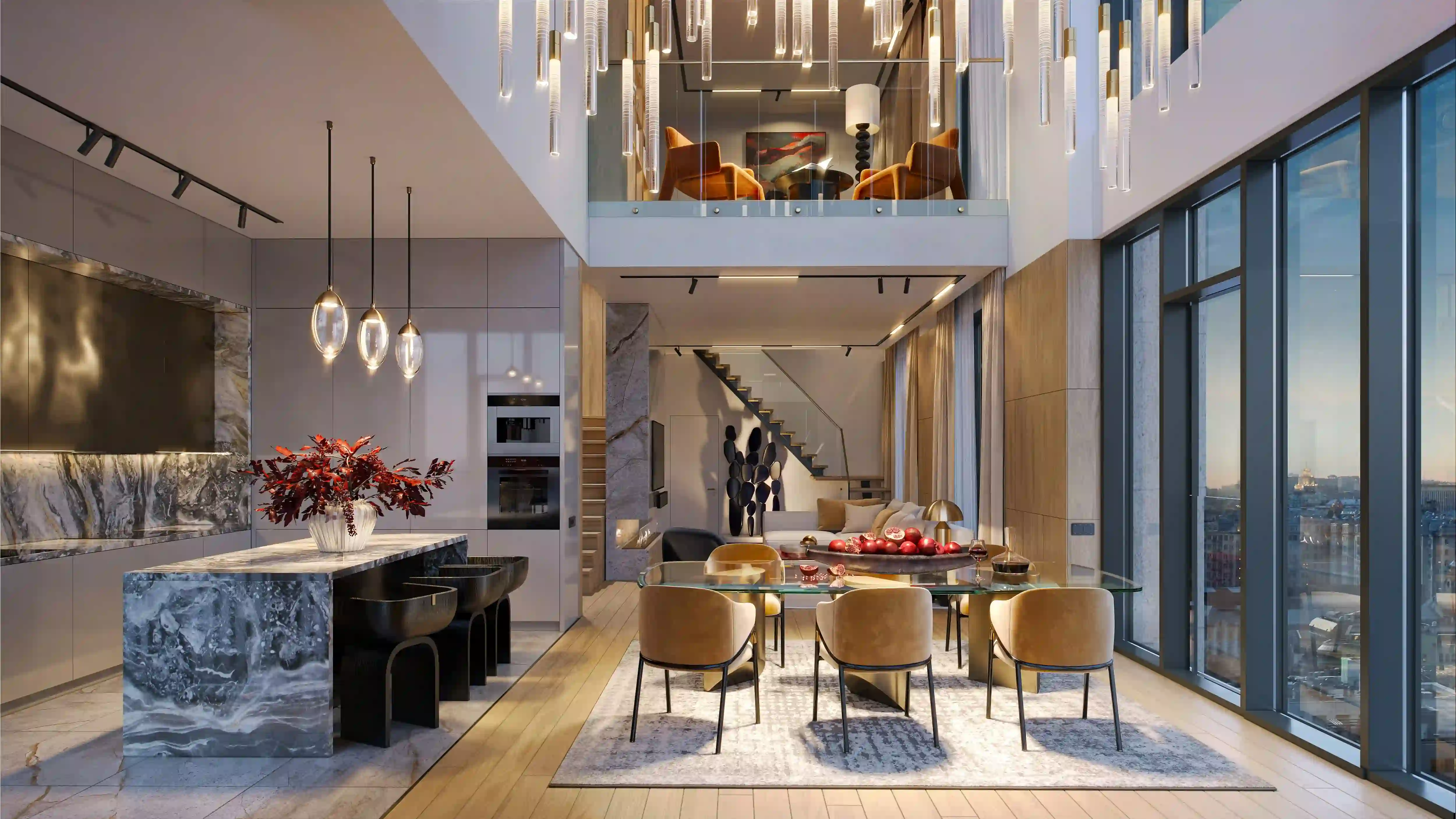 Форматы квартир: двухэтажные со вторым светом, верхние уровни на предпоследнем этаже с каминами и потолками до 8,25 метра, а также апартаменты с потолками до 7 метров и возможностью организации антресольного этажа
