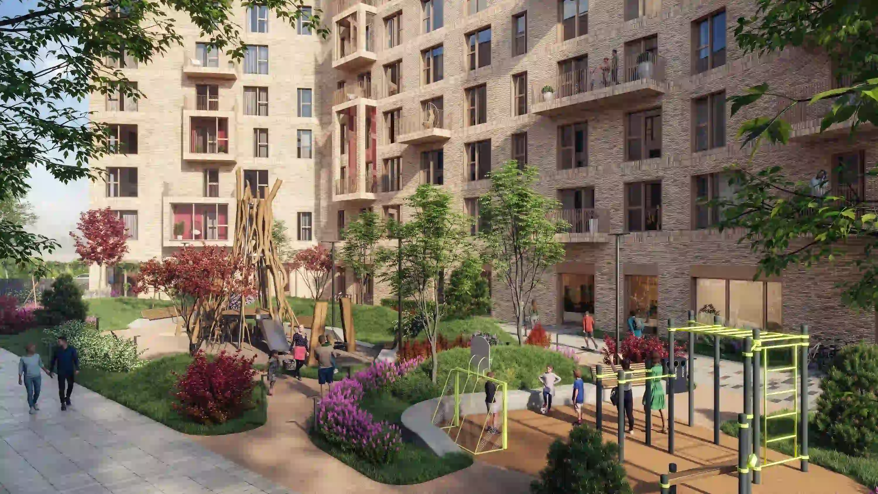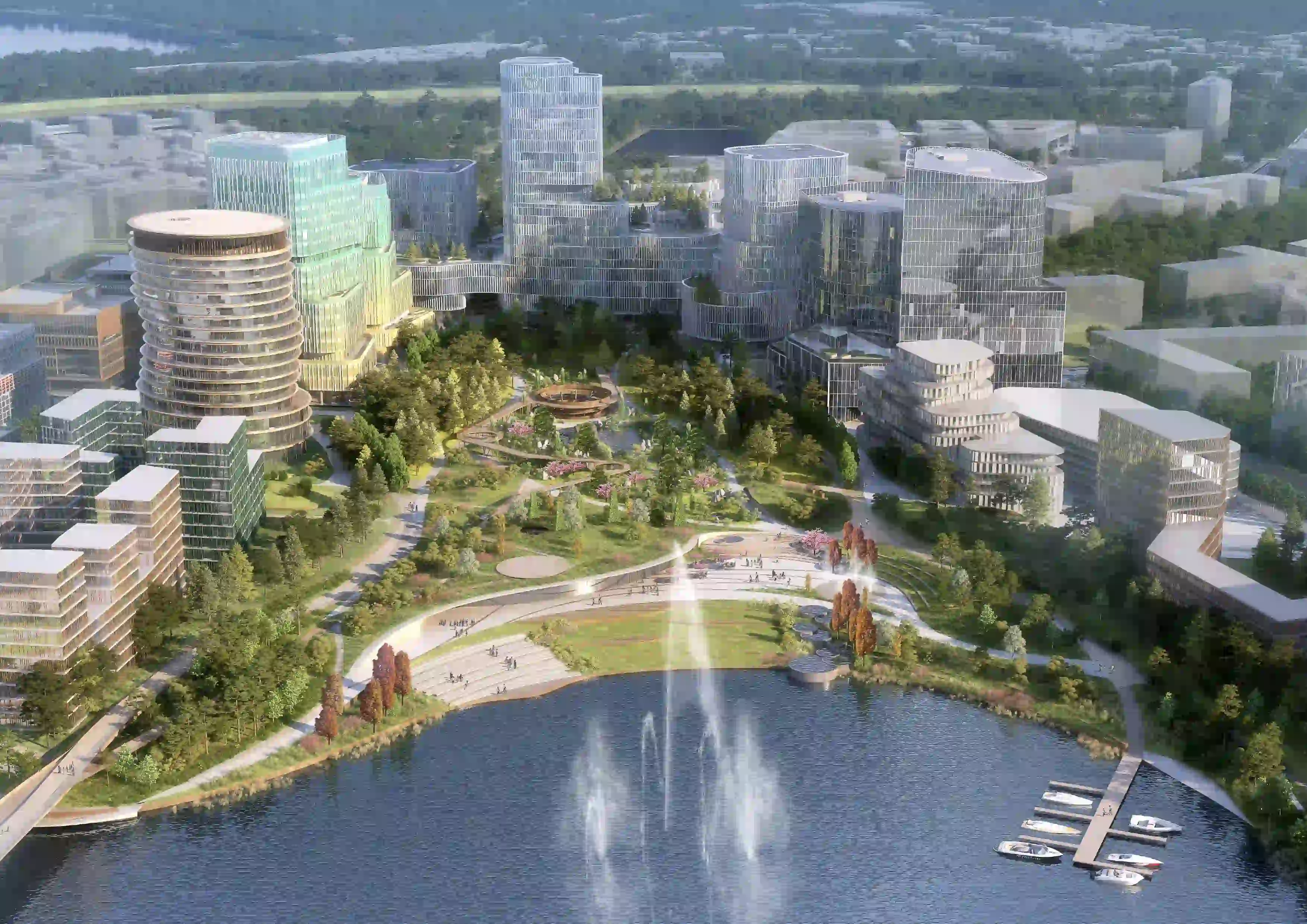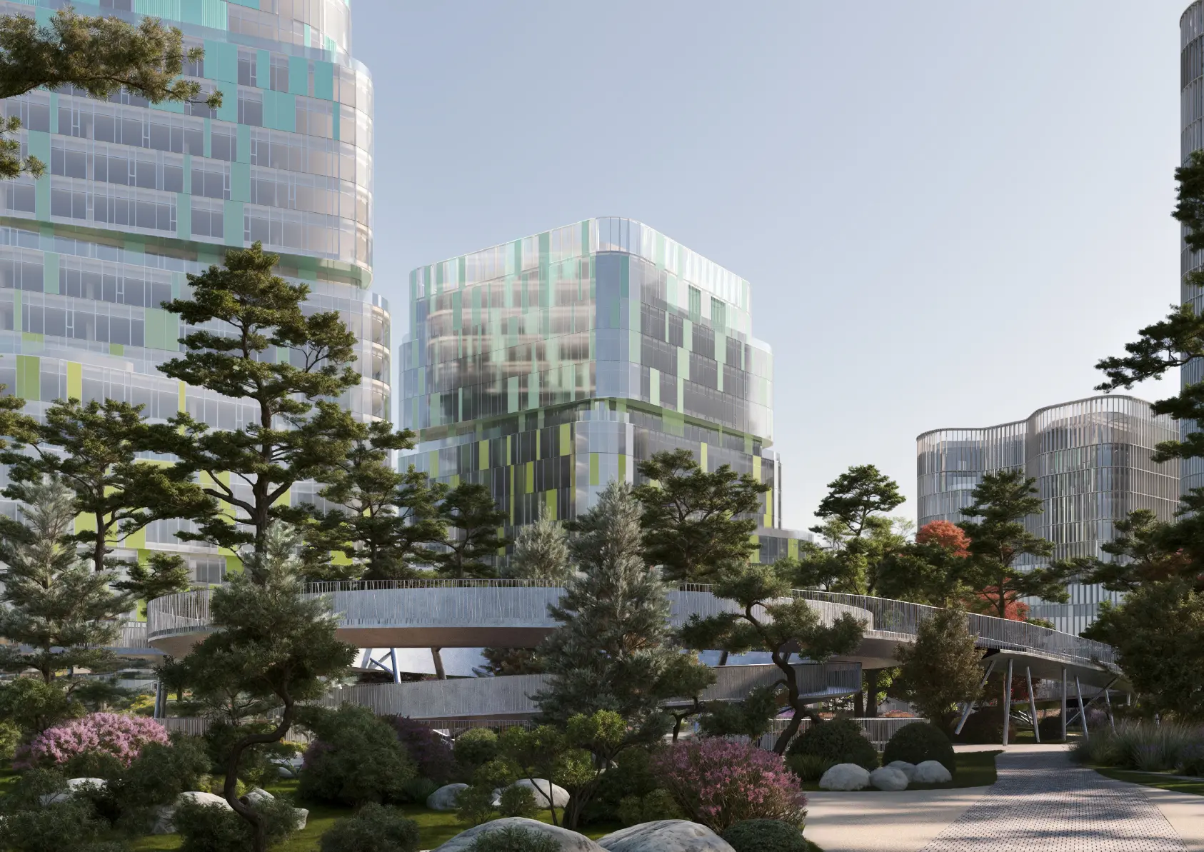 На территории комплекса предусмотрена социальная инфраструктура, включающая две поликлиники, офисные помещения, 13 детских дошкольных учреждений и 7 школ.