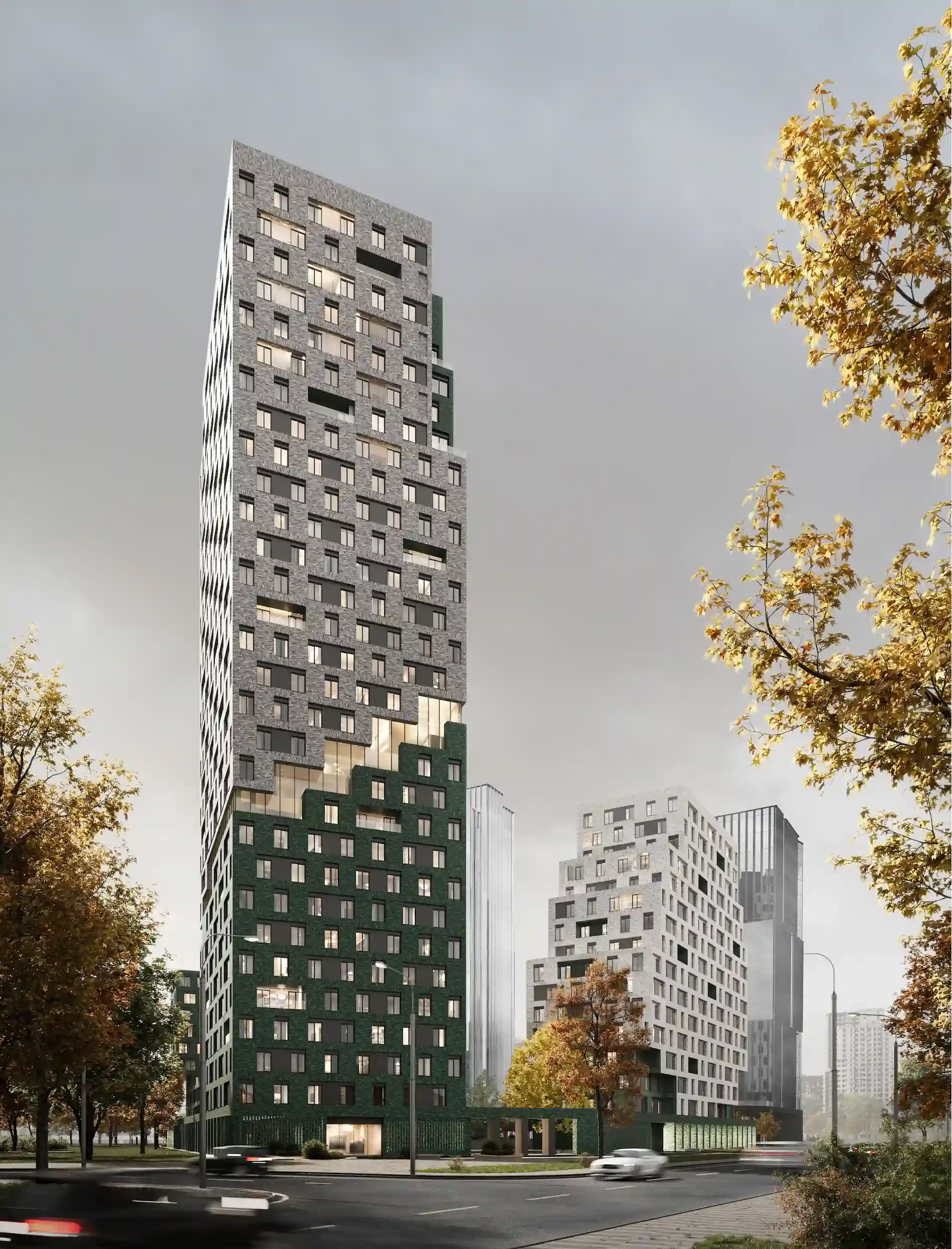 Здания объединяет общий двухэтажный стилобат, который станет центром ритейла и городской инфраструктуры. На стилобате будет закрытый внутренний двор с прогулочными, игровыми и спортивными зонами.