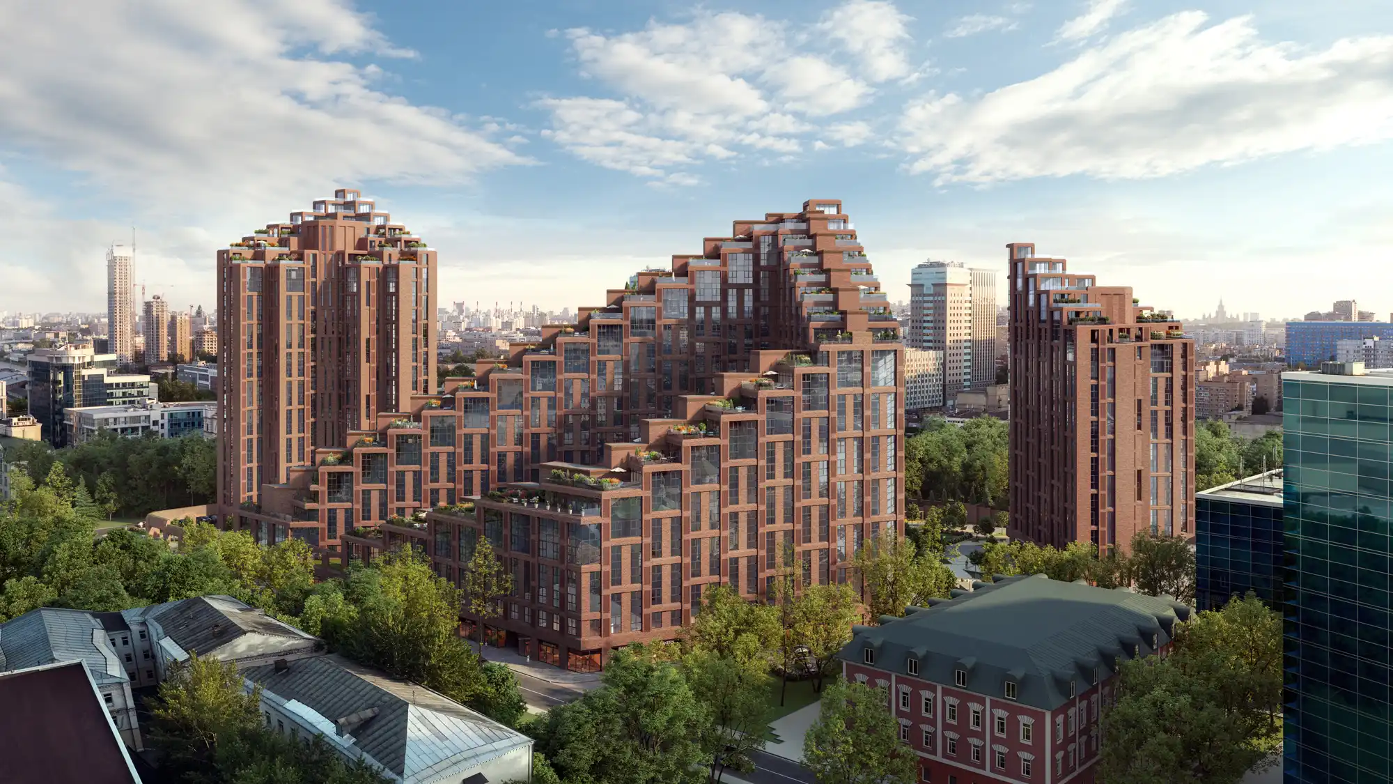 Жилой комплекс бизнес-класса с авторской архитектурой и каскадными фасадами расположен в Замоскворецком районе.