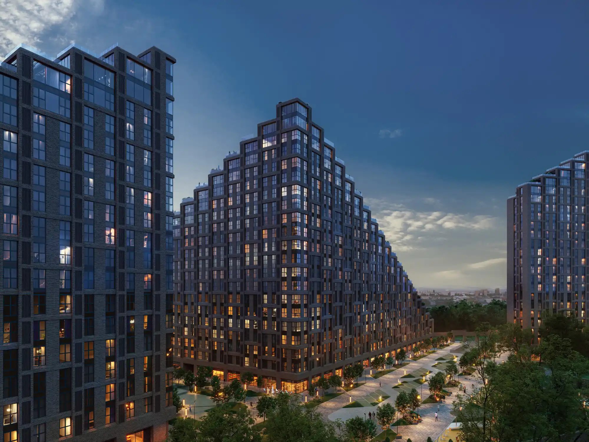 Жилой комплекс включает три здания высотой до 21 этажа