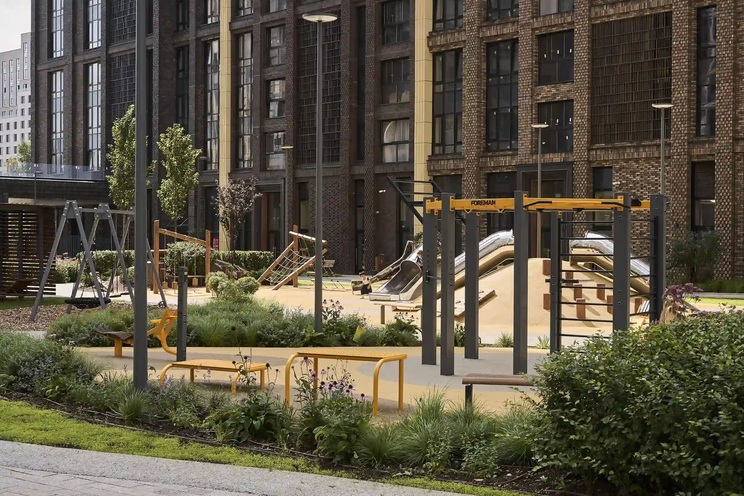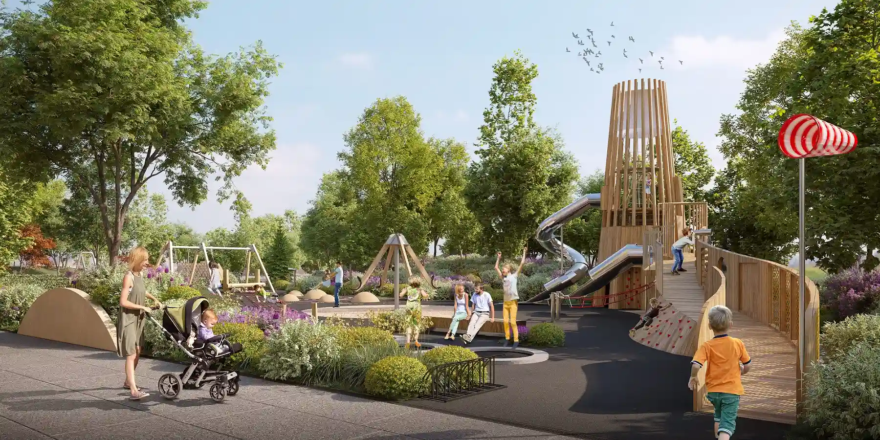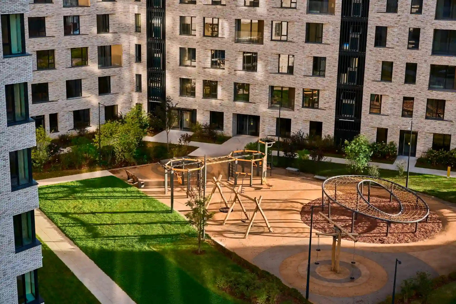 Дома расположены на пешеходной набережной протяженностью один километр, где отсутствует автомобильное движение, что обеспечивает чистый воздух и тишину. К воде оборудованы безопасные спуски. Отсутствие будущей застройки между кварталом и рекой гарантирует сохранение панорамных видов.