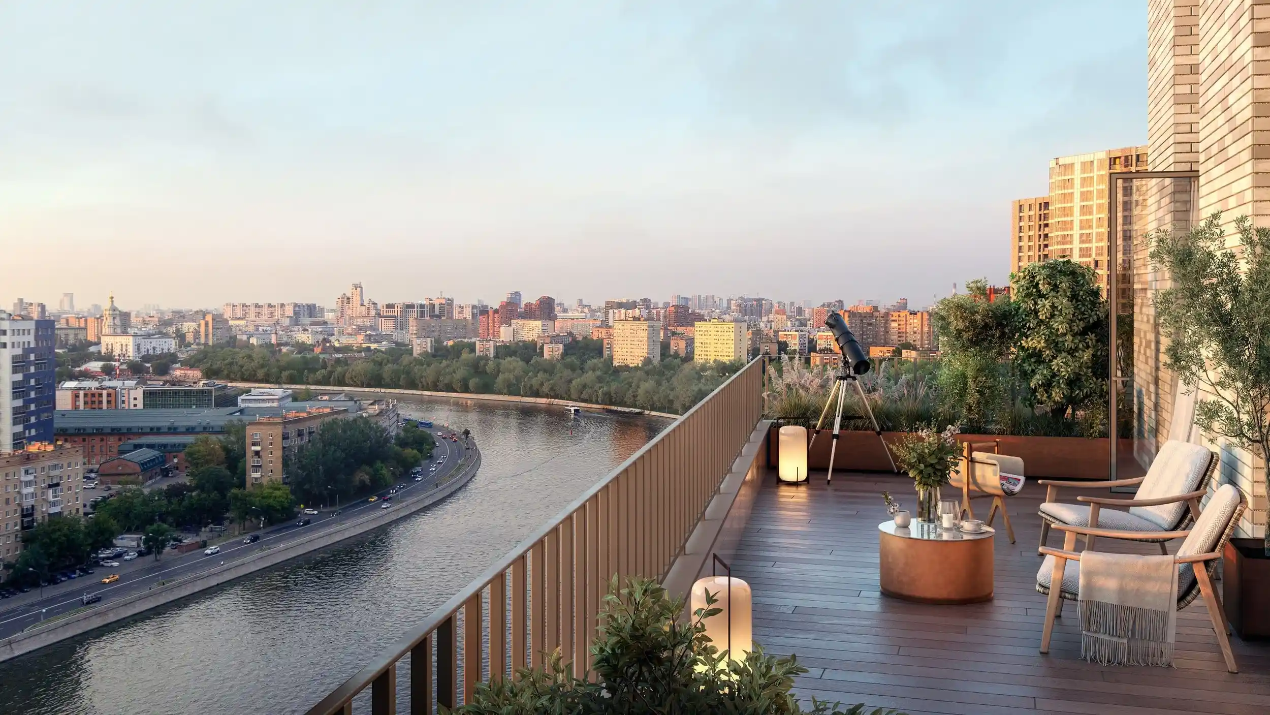 с прямыми видами на Москву-реку