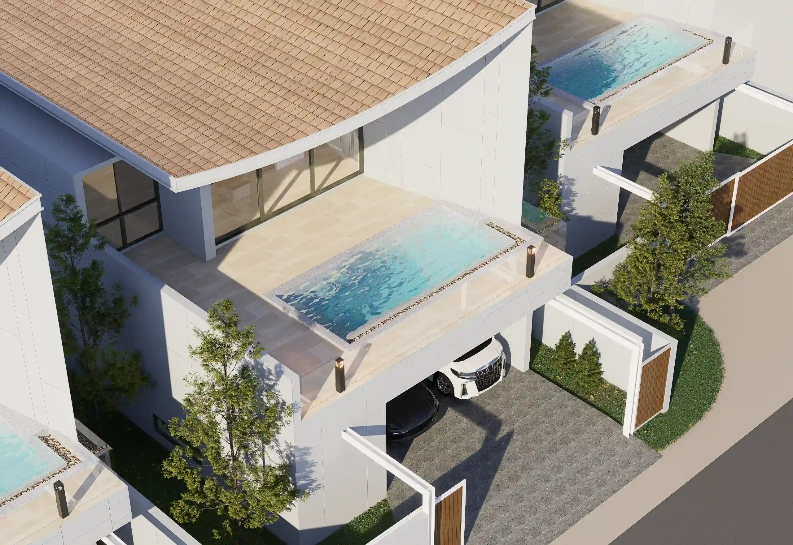 Виллы оснащены собственным бассейном, просторной террасой и ландшафтным садом