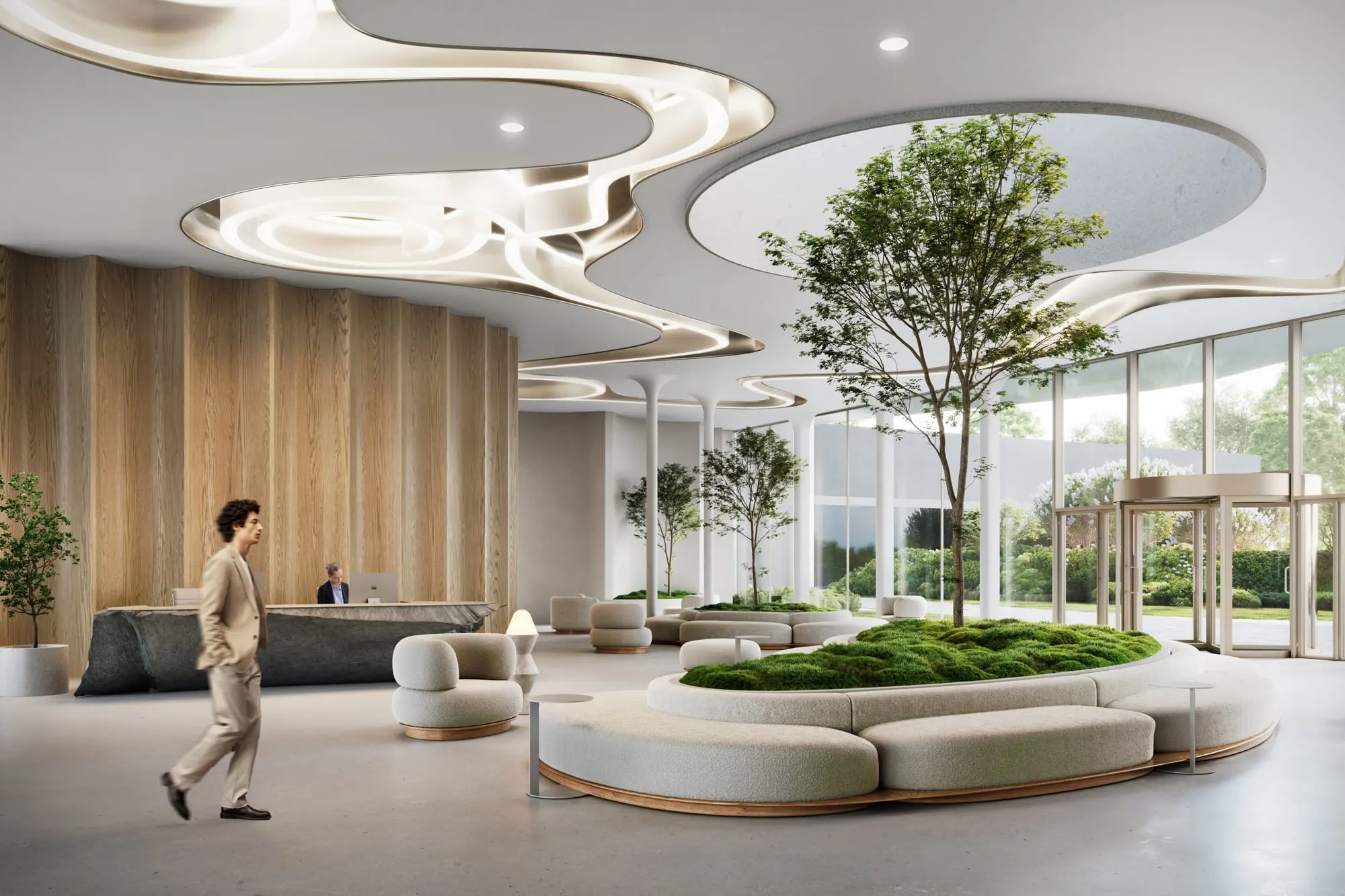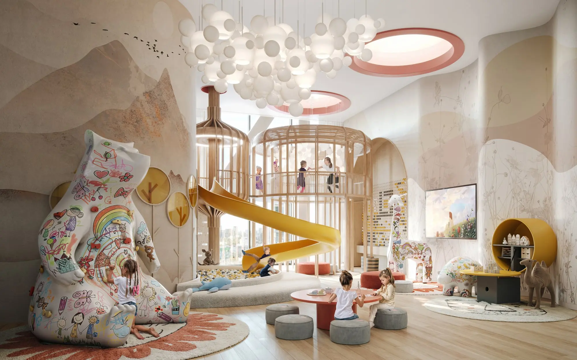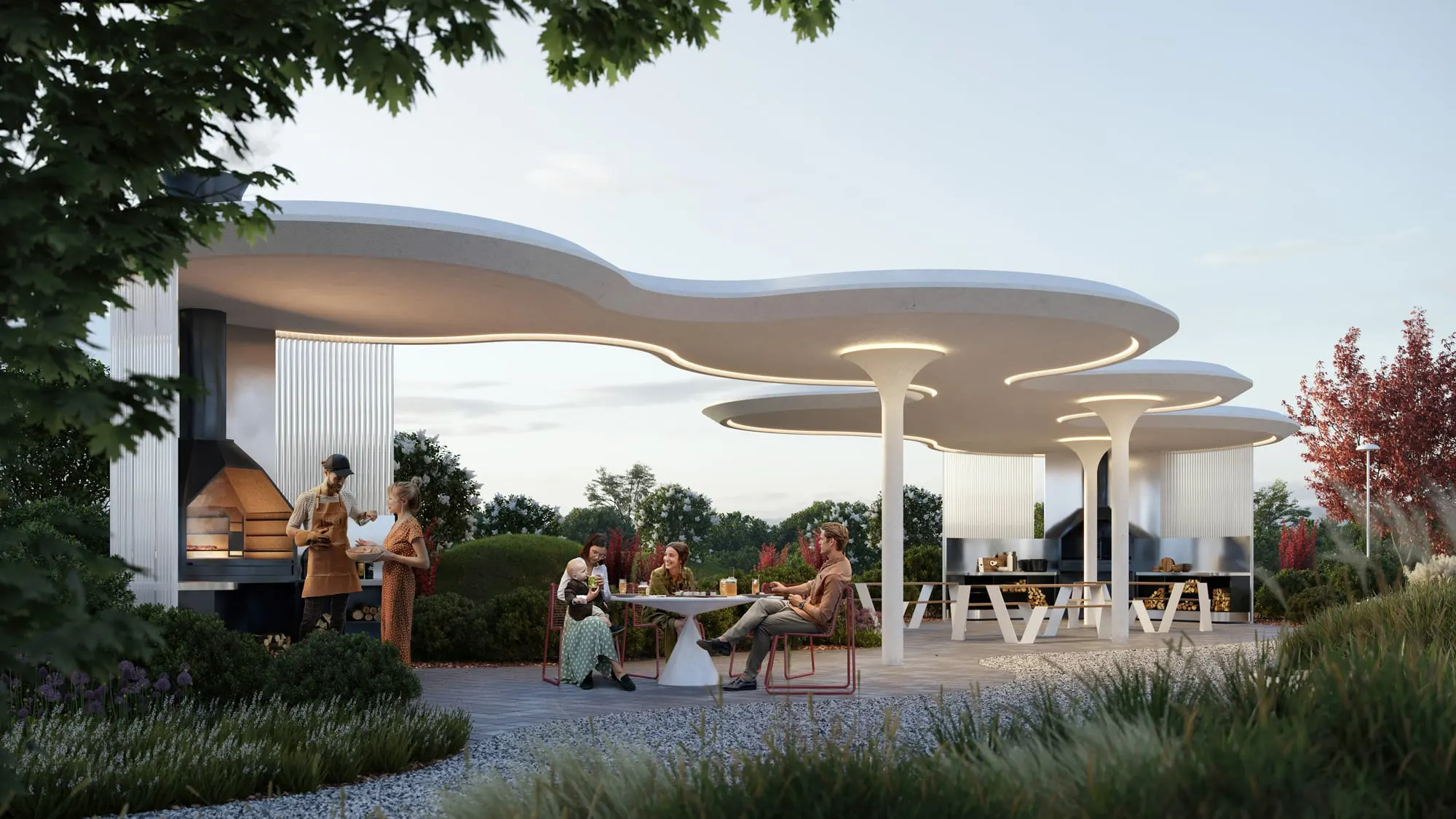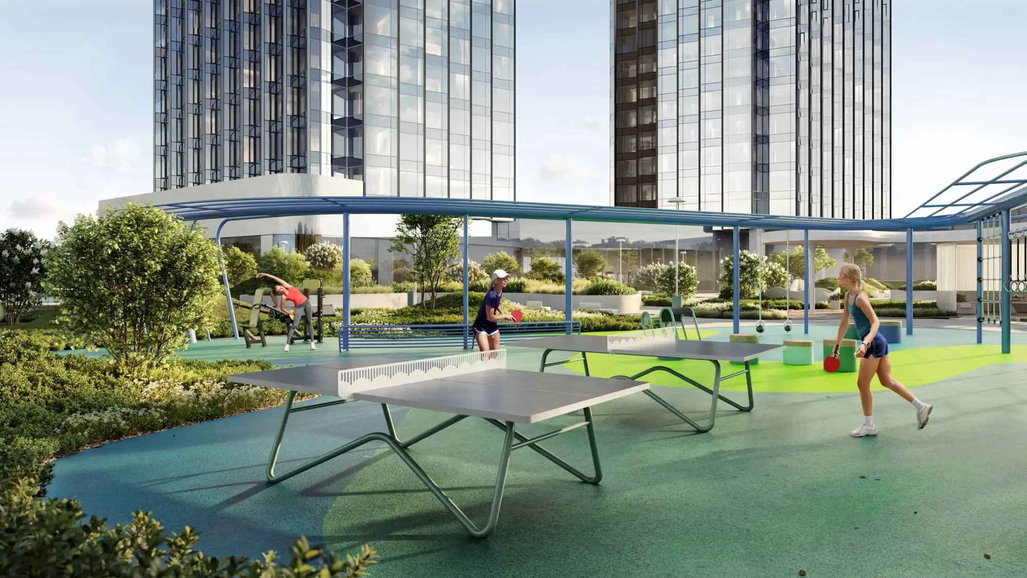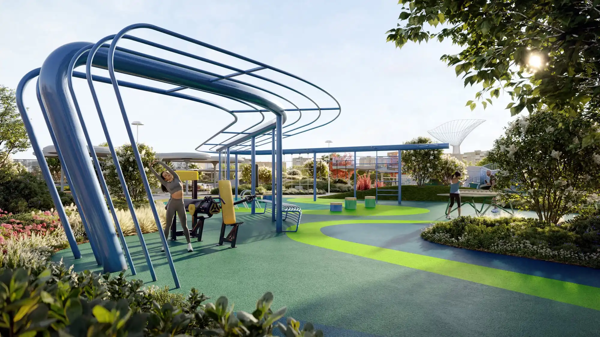 На территории сада предусмотрены 15 зон для отдыха, работы, спорта и детей. Знаковым местом станет центральная площадь с амфитеатром и водопадом — сочетание камней, растений и струящейся воды создает баланс с природой.