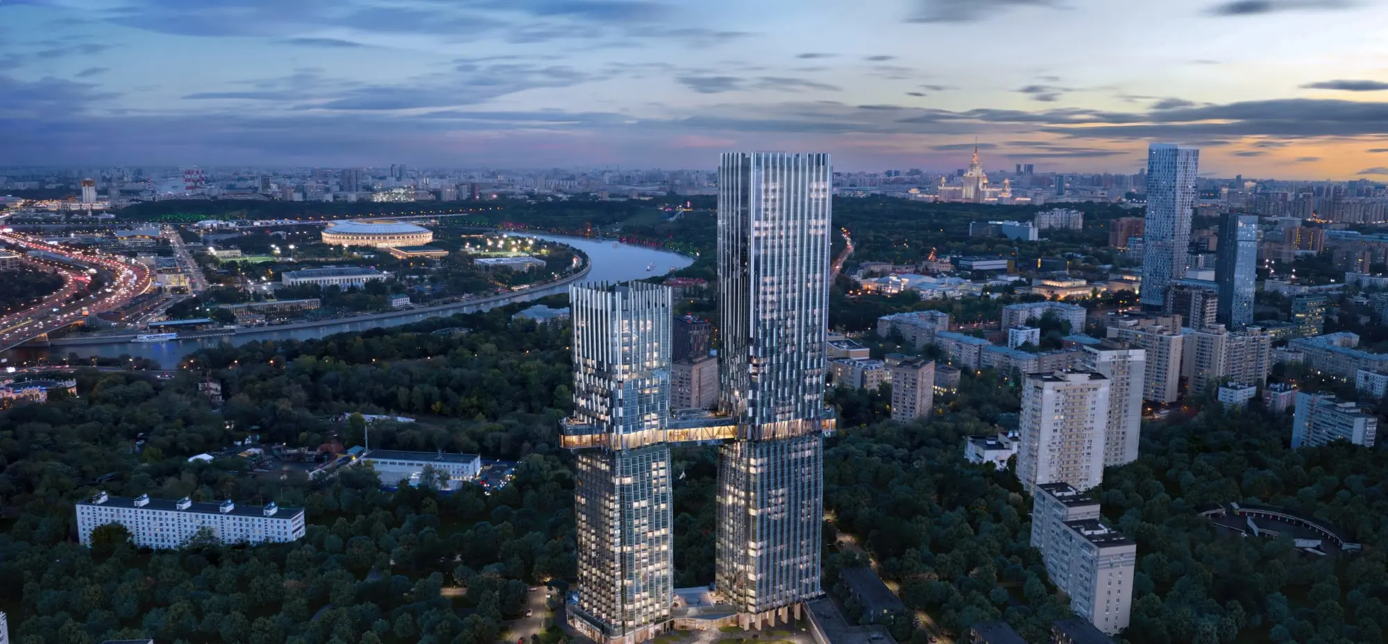 Проект включает в себя две башни высотой 34 и 49 этажей, из каждой квартиры открываются виды на Москву