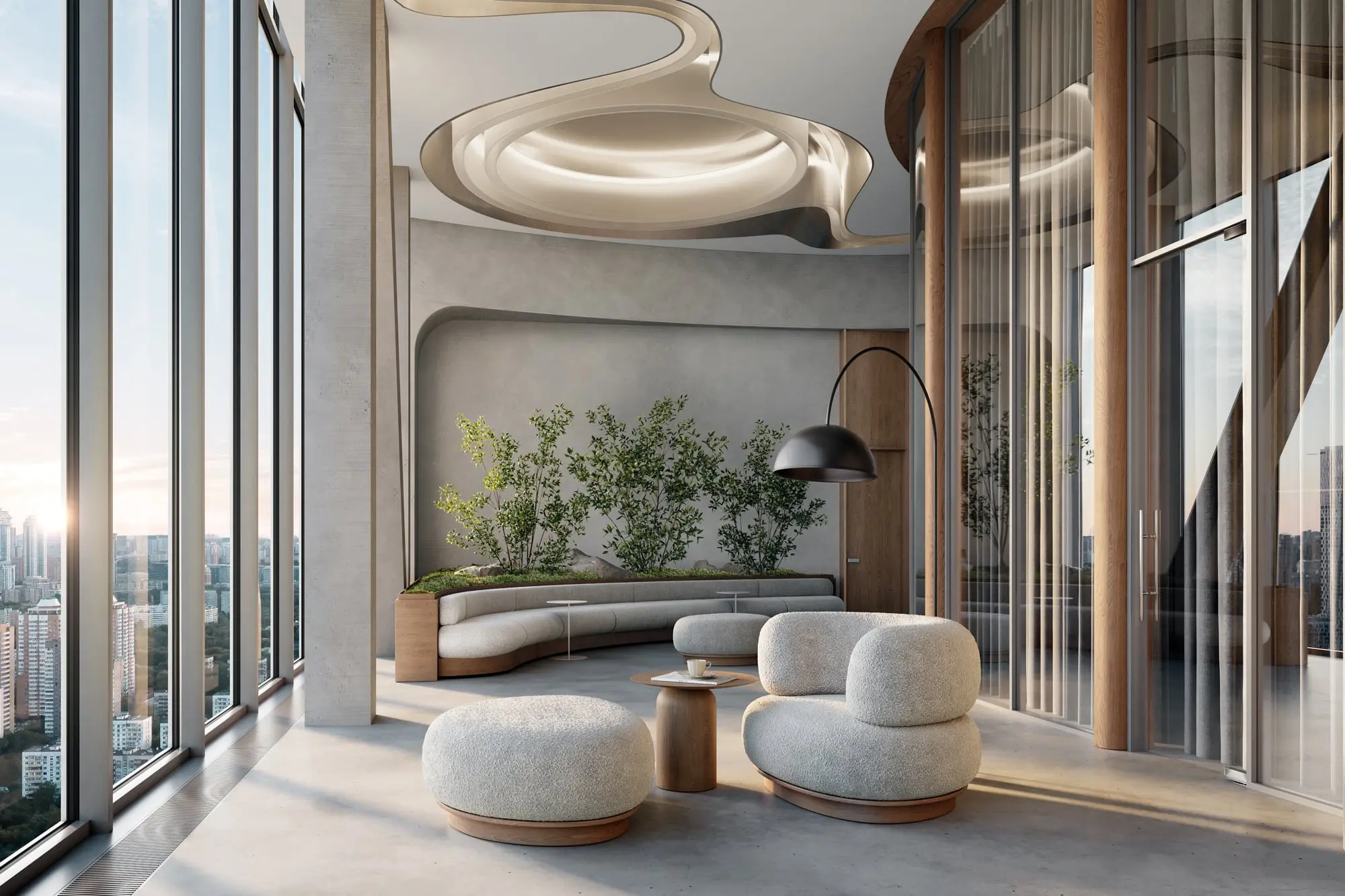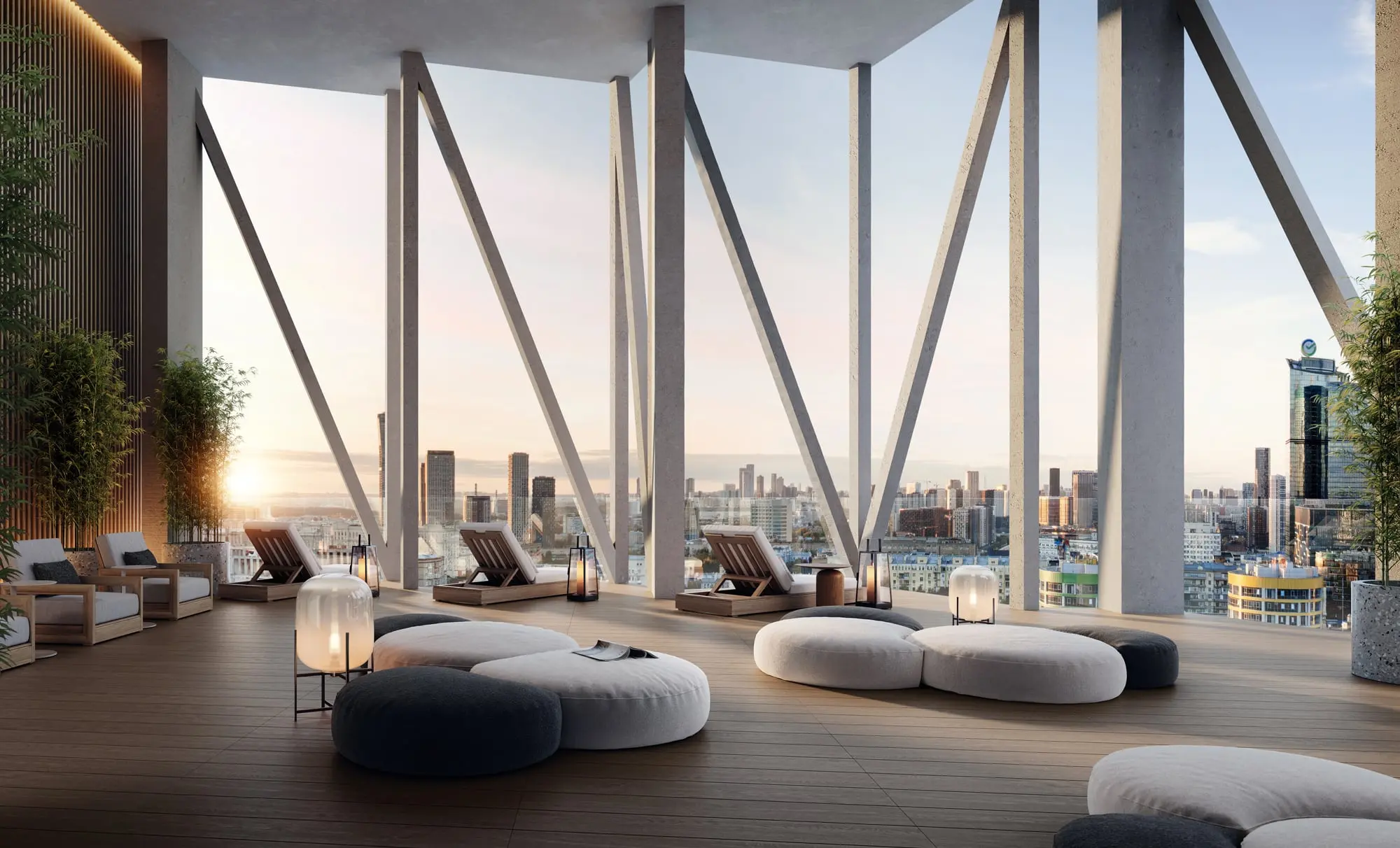 В квартире с террасой можно встретить рассвет или насладиться закатом, позагорать и полюбоваться огнями ночной Москвы. Двухуровневые варианты с патио подойдут тем, кто ценит простор, или семьям с детьми. В приватном дворике можно разместить мягкие пуфики для создания зоны отдыха или установить столик для рабочего кабинета или романтического ужина. В «парящих» квартирах создается ощущение невесомости наедине с красотой столицы.