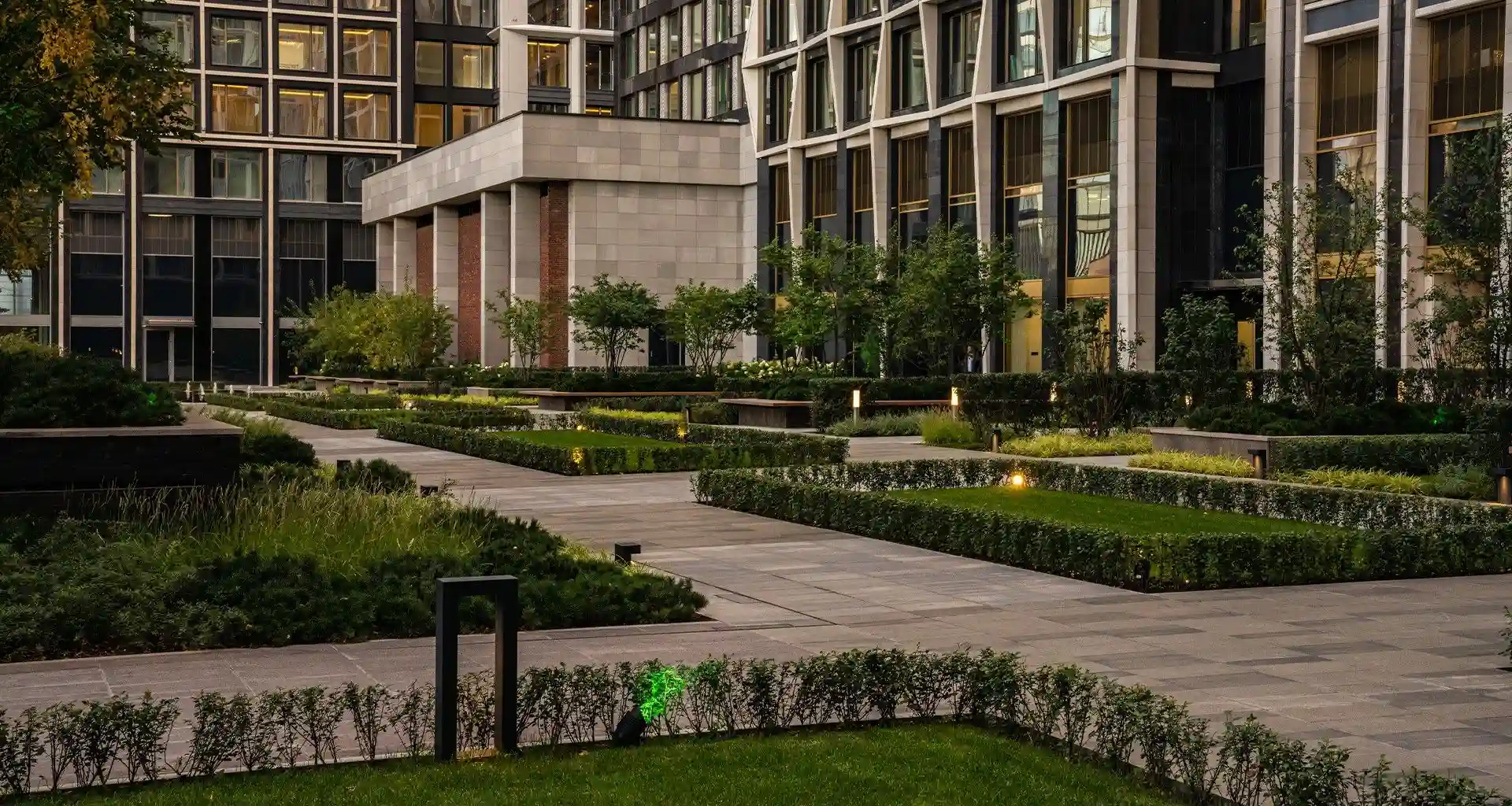 Общая площадь озеленения квартала составляет 5,5 гектара, из которых 3 гектара занимает закрытый частный парк, доступный исключительно для резидентов.