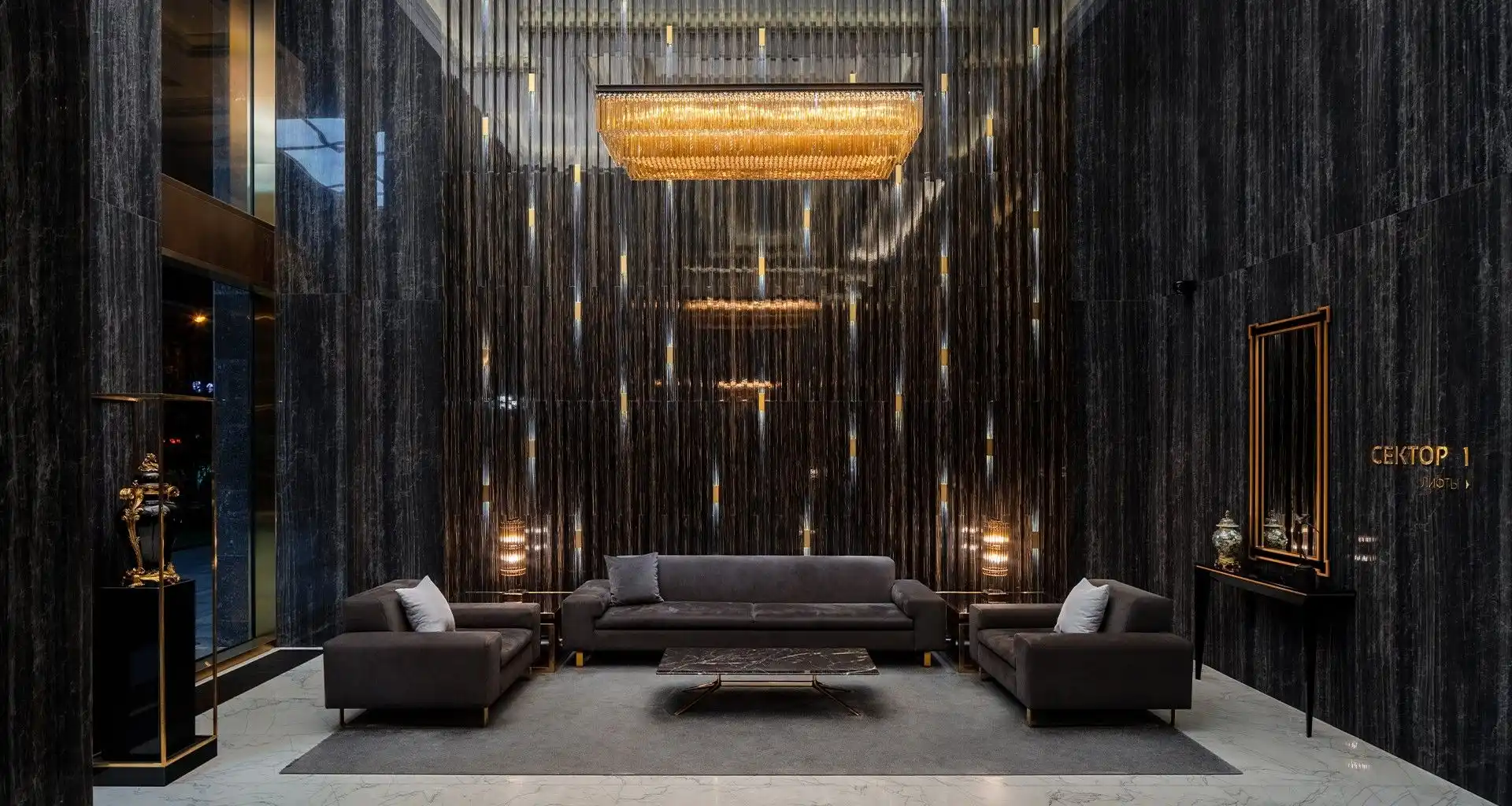 Включает девять жилых небоскребов высотой до 42 этажей