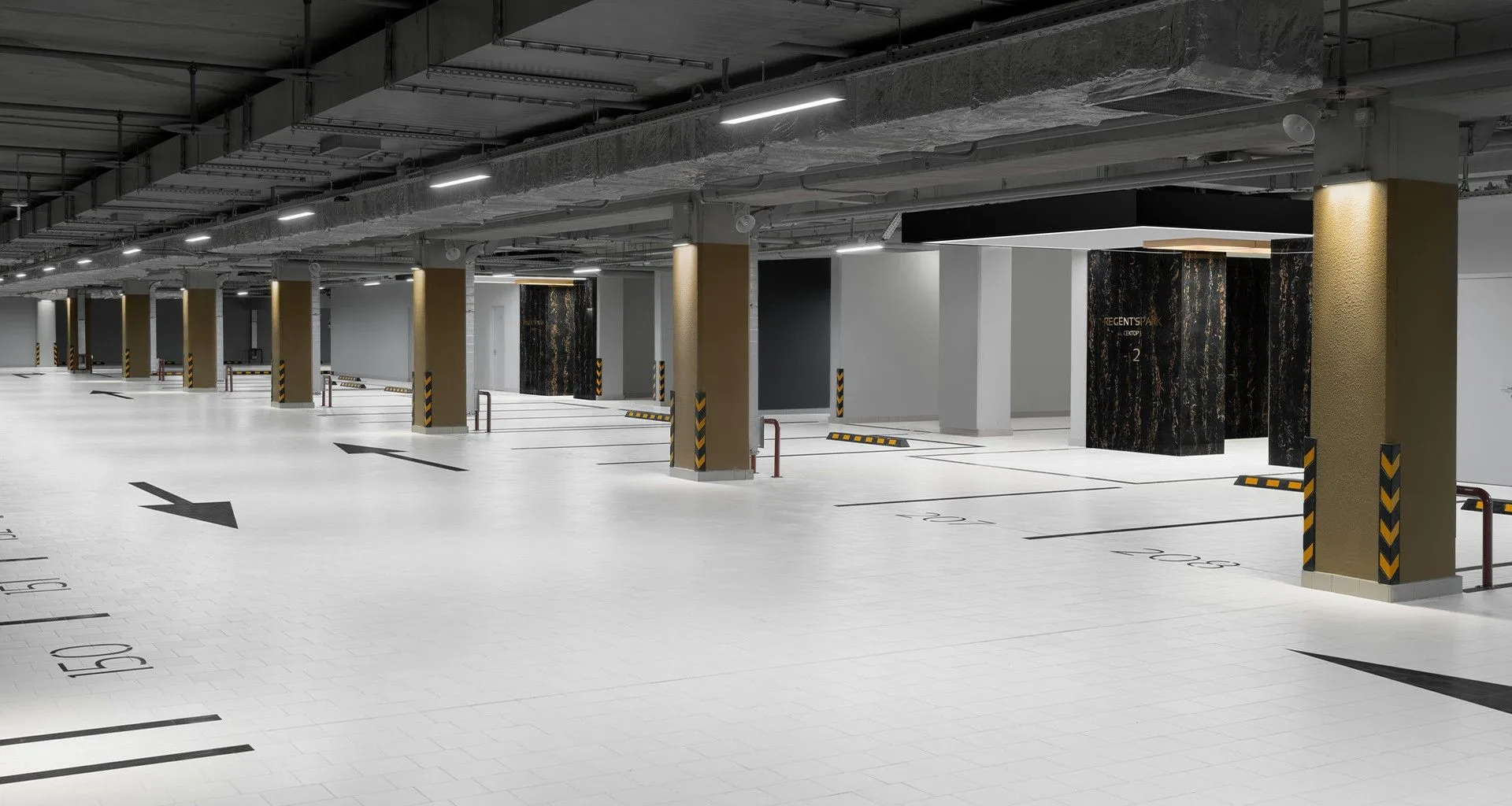 На подземном паркинге оборудованы два поста для детейлинга (профессионального ухода за автомобилем), автоматическая мойка на восемь боксов и шиномонтажная мастерская.