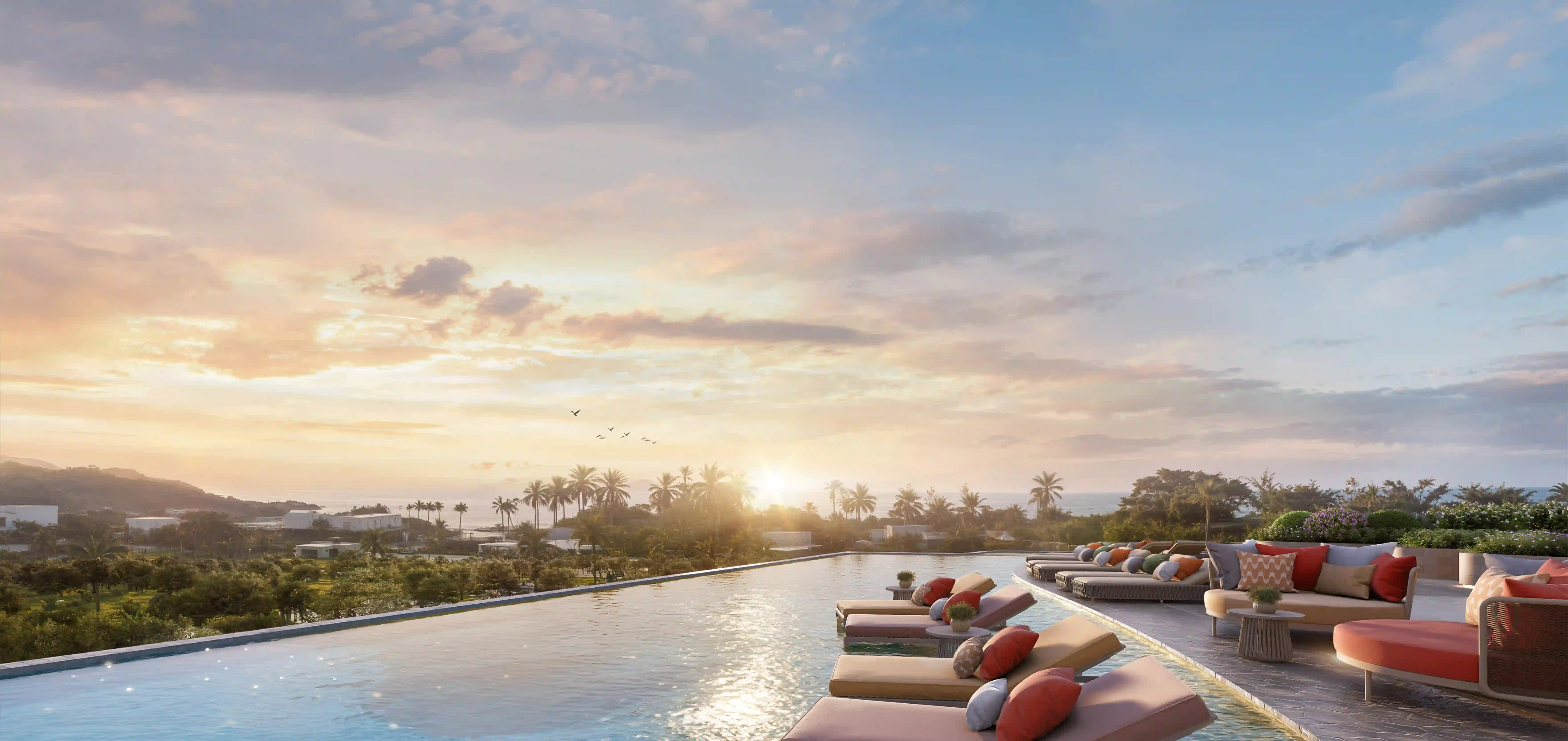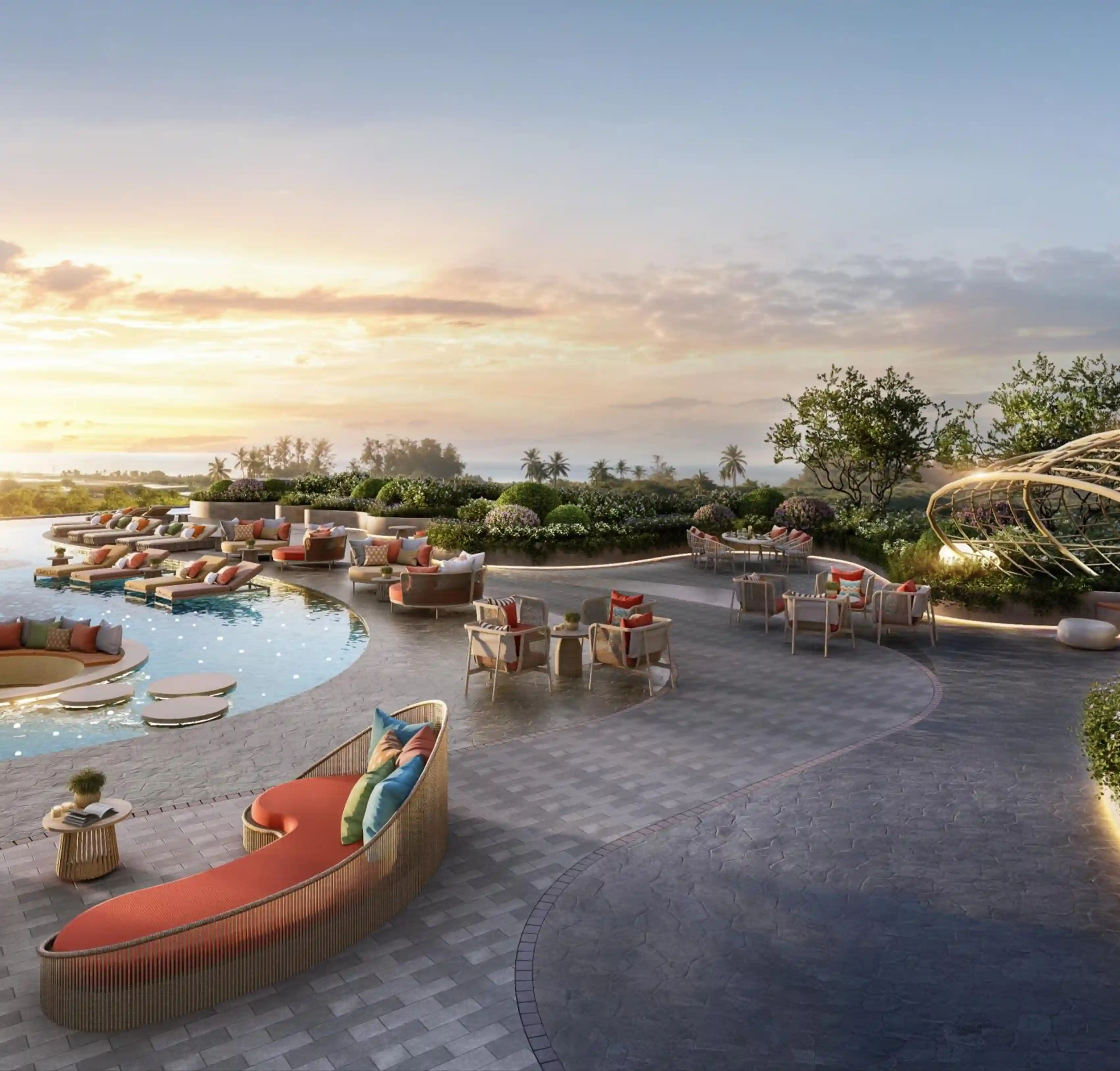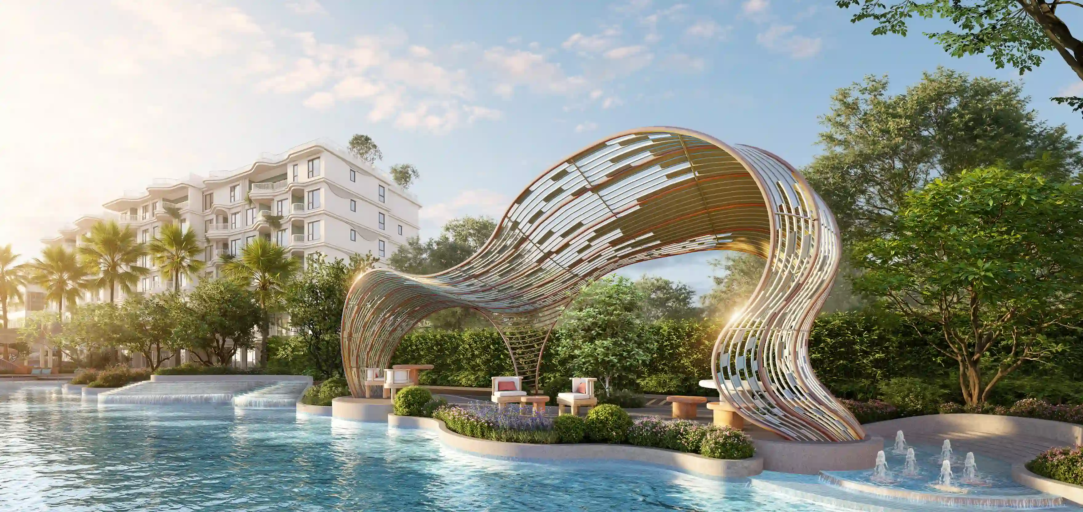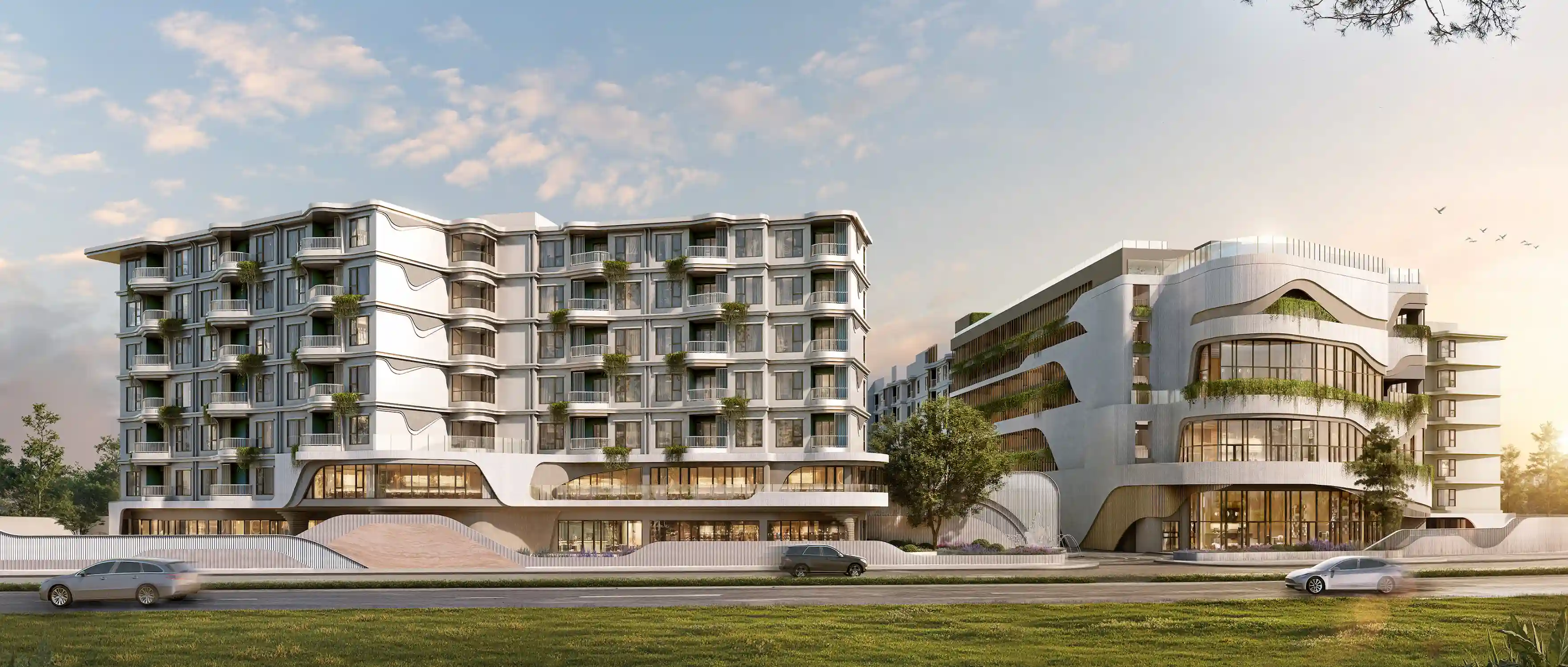 На территории предусмотрено более 3 000 м² зеленых зон, а также бассейны общей площадью 2 800 м²